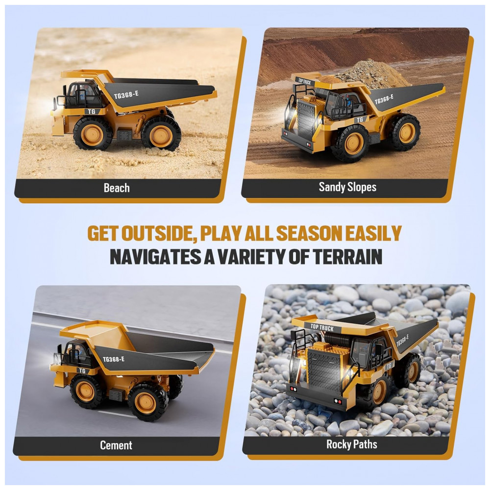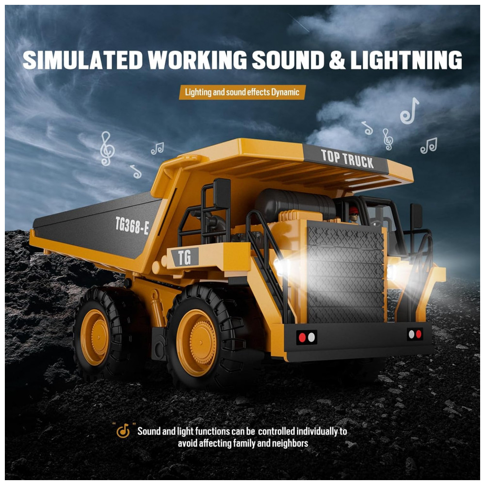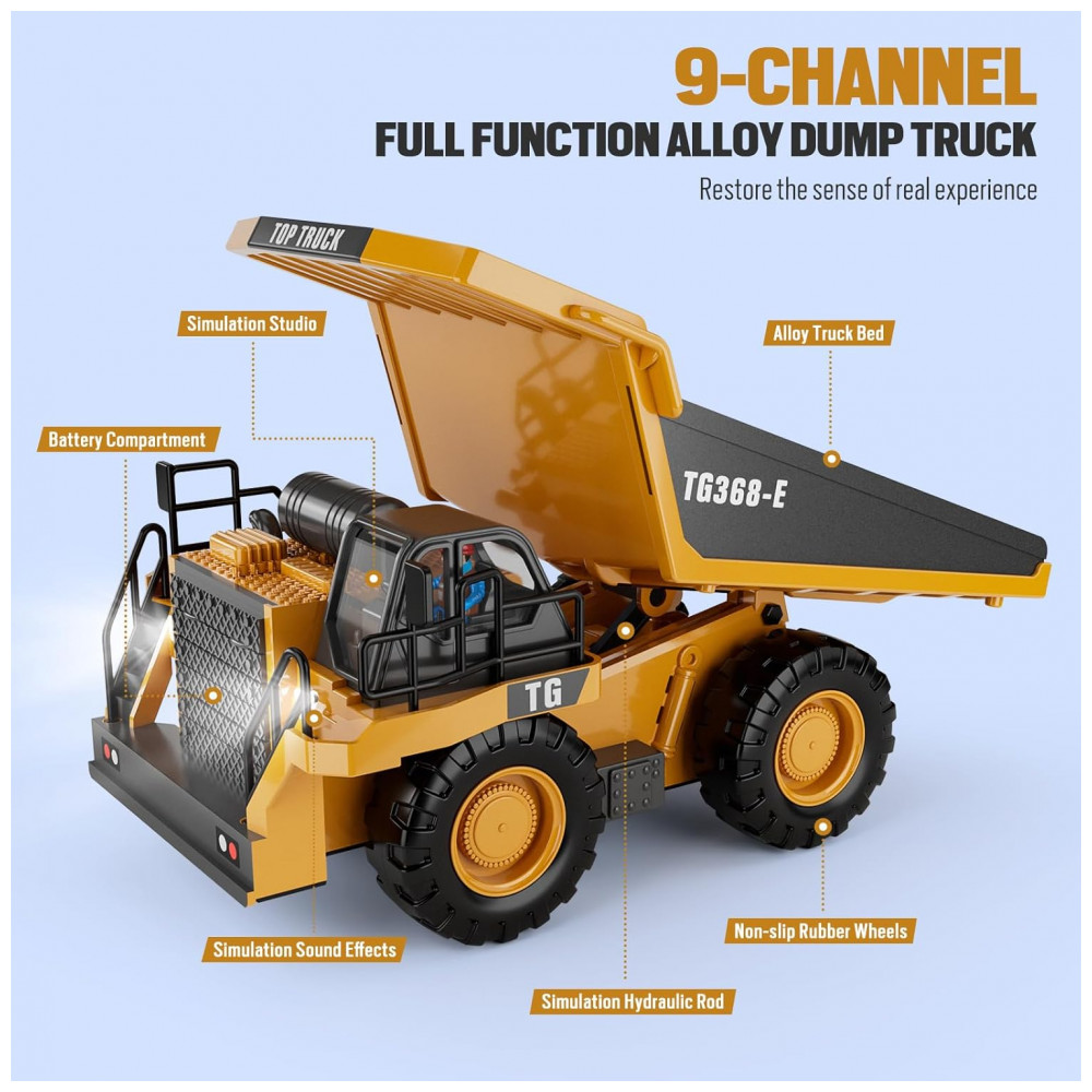 Caminhão de Brinquedo basculante RC Controle Remoto de 9 Canais com Cama de Metal Iluminada Bateria Recarregável KIDMARKT