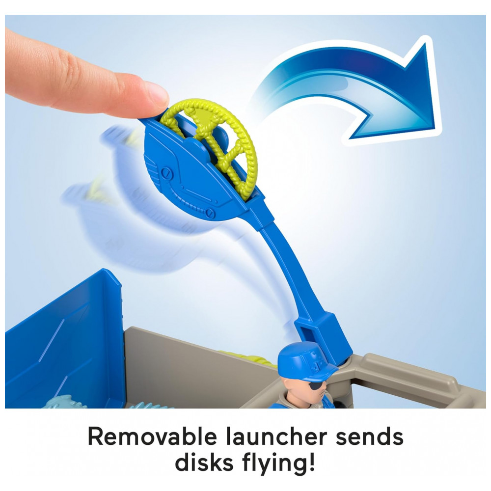 O brinquedo inclui ainda um lançador manual com discos projetis para ampliar as possibilidades de ação durante as brincadeiras, estimulando narrativas de perseguição, resgate e transporte de criaturas. Desenvolvido para crianças a partir de 3 anos, o conjunto favorece o jogo imaginativo, coordenação motora fina e criação de histórias, com construção em plástico resistente adequada ao uso frequente em ambientes domésticos.