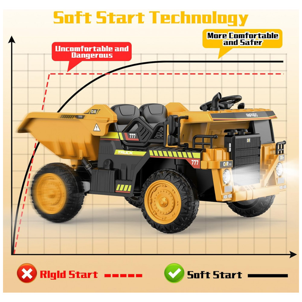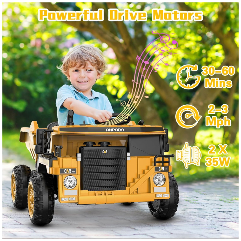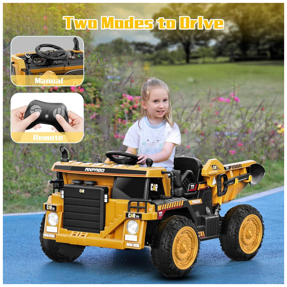 Caminhão de Construção Elétrico Infantil 2 Assentos com Caçamba 12V ANPABO Amarelo