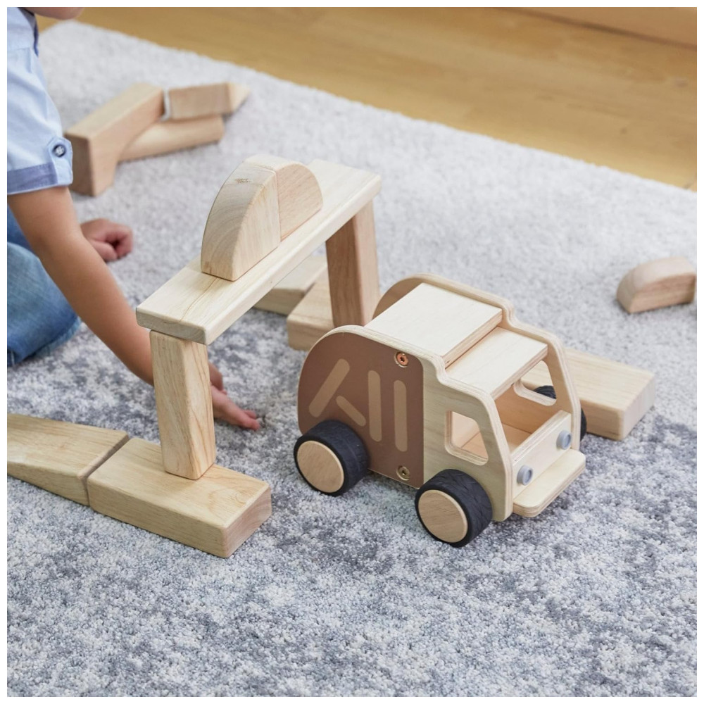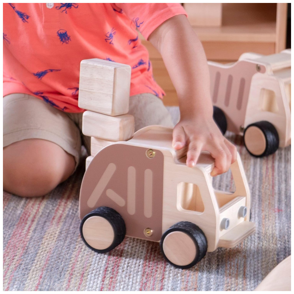 Caminhão de madeira Guidecraft Wooden Garbage Truck para brincadeiras de caminhão de lixo e complemento de cantos de blocos