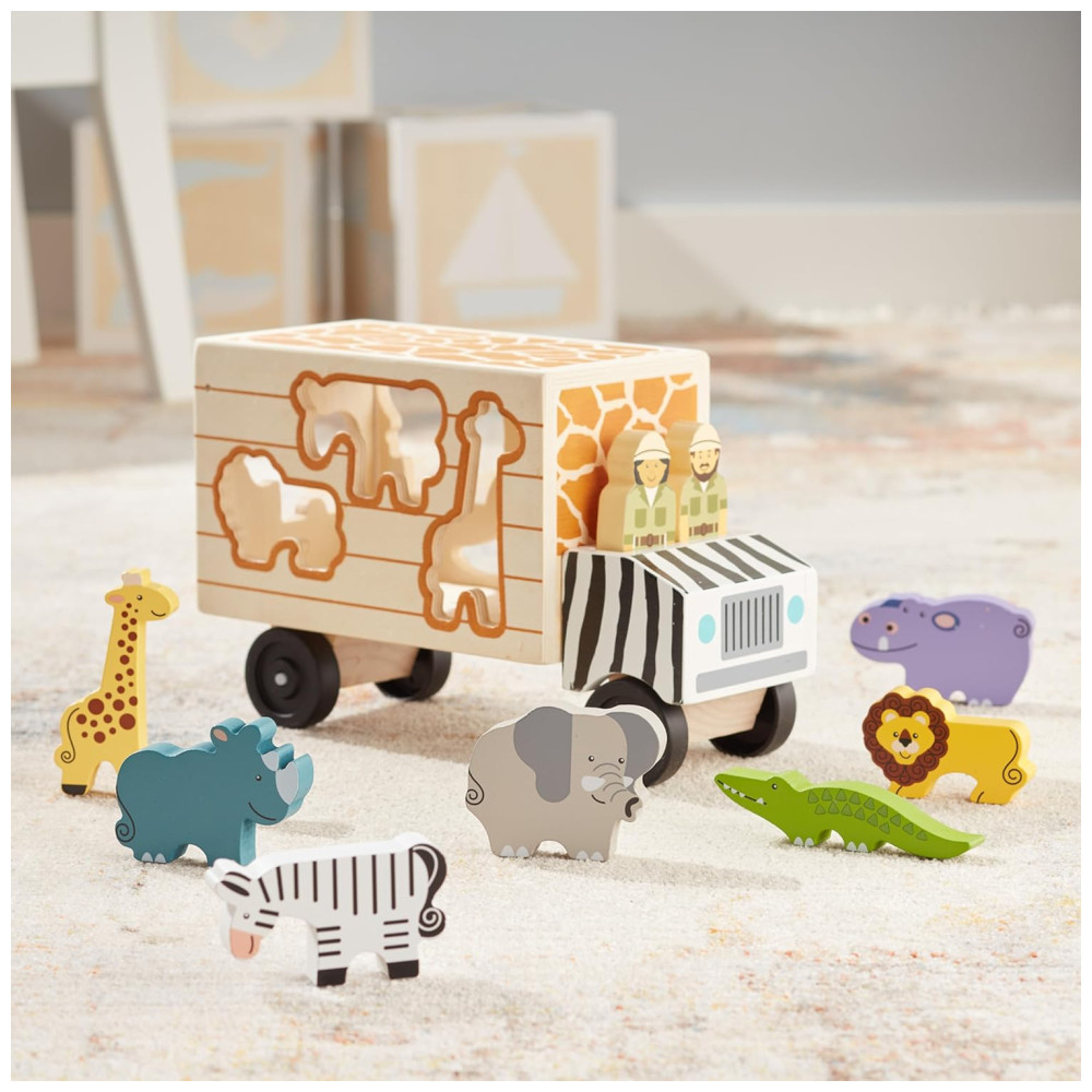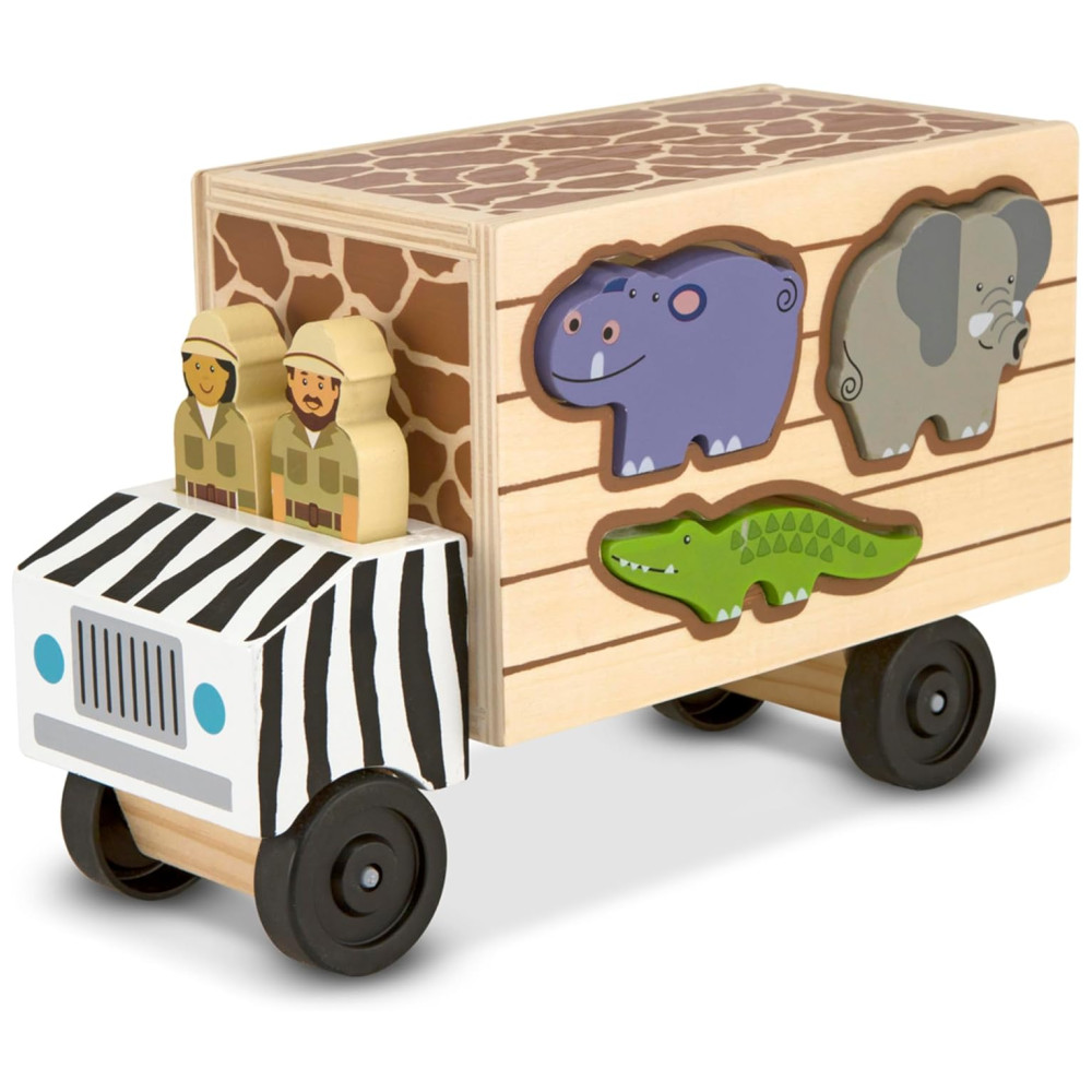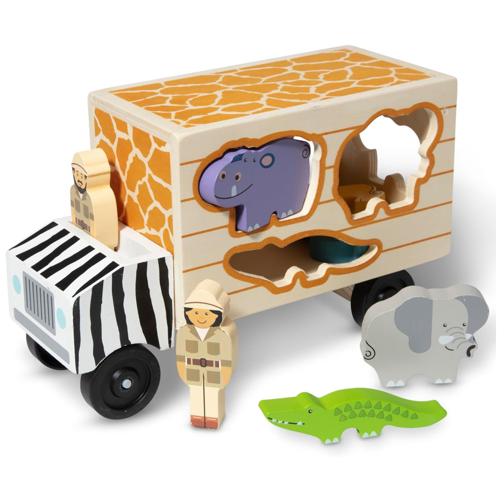 O Caminhão Melissa Doug Animal Rescue ShapeSorting é um brinquedo de madeira robusto, perfeito para crianças de 2 a 4 anos. Com 7 peças de animais, incluindo jacaré, zebra, rinoceronte, elefante, girafa, hipopótamo e leão, as peças cabem nas laterais do caminhão através de ranhuras cortadas. O caminhão possui uma porta elevatória para descarregar os animais coloridos, que as crianças podem contar e empilhar antes de carregar novamente no caminhão.