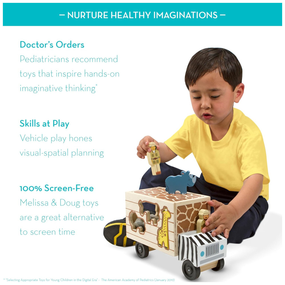 O Caminhão Melissa Doug Animal Rescue ShapeSorting é parte da linha de produtos da Melissa Doug, que tem como objetivo despertar a imaginação e um sentimento de admiração em todas as crianças para que possam descobrir a si mesmas, suas paixões e seu propósito. É um presente excepcional para crianças de 2 a 4 anos e pode ser combinado com os fantoches de mão Melissa Doug Zoo Friends para completar a experiência de jogo prático e dar às crianças outra opção envolvente para diversão sem tela.