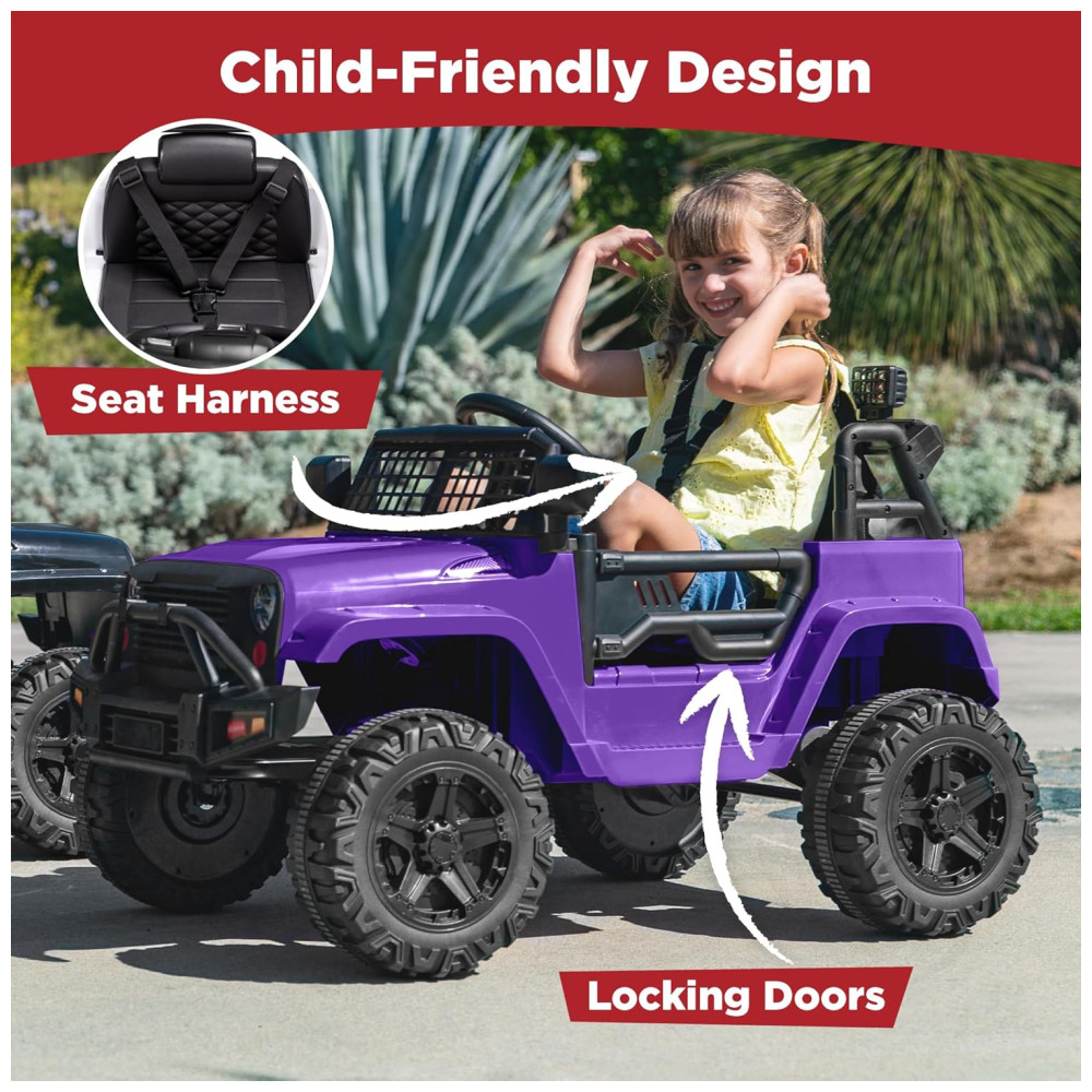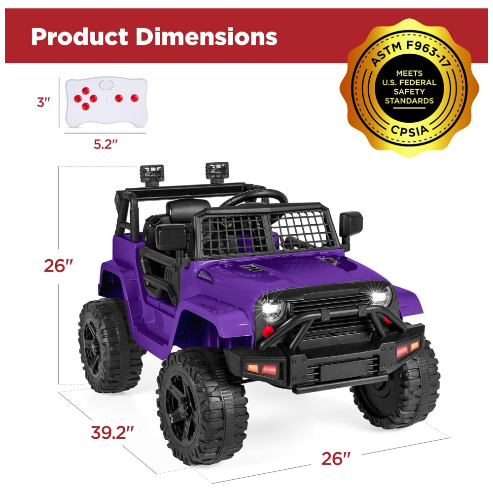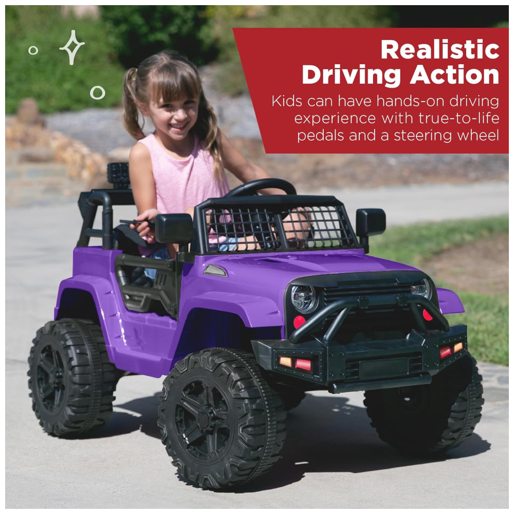 Caminhão Elétrico Infantil 12V da Best Choice Products com Controle Remoto dos Pais Suspensão a Molas Luzes de LED Porta AUX – Roxo