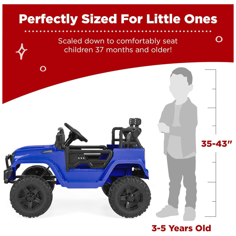 Este incrível caminhão elétrico é perfeito para crianças a partir de 3 anos que querem se sentir como motoristas experientes! Possui um design realista e potente de 12V, com cinto de segurança ajustável, faróis de LED brilhantes, portas traváveis e para-brisa gradeado para um estilo offroad. Com motor de 12V e pneus de tração, pode ser usado em diversos tipos de terreno. Seu filho pode dirigir manualmente ou você pode orientá-lo com o controle remoto, que possui controles de frente e ré. Seguro e resistente, com rodas de plástico que nunca murcham, suspensão de molas e velocidade máxima de 2.8 mph para aventuras ao ar livre suaves. Além disso, possui uma entrada AUX para que as crianças possam ouvir sua própria música enquanto dirigem. Dimensões totais: 99,69cm de comprimento x 66cm de largura x 66cm de altura. Capacidade de peso: 27,67 kg.