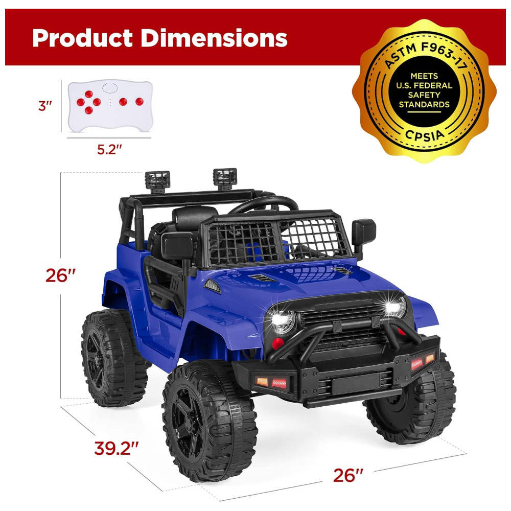 Caminhão Elétrico Infantil 12V da Best Choice Products com Controle Remoto para Pais Suspensão de Molas Luzes de LED Porta AUX – Azul