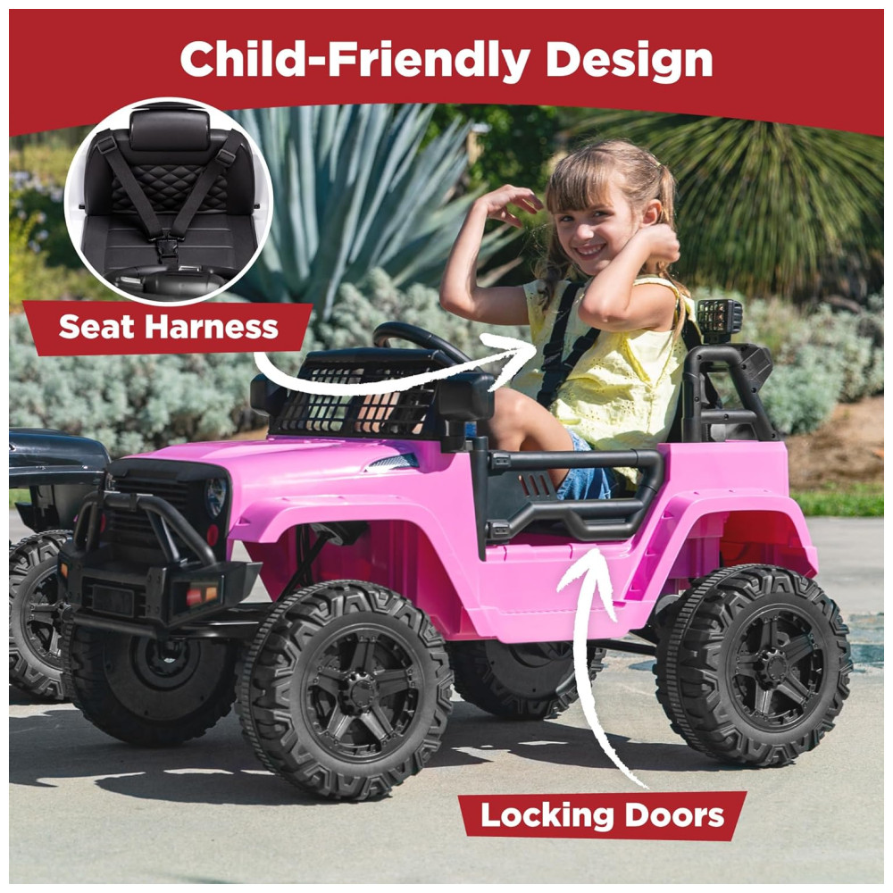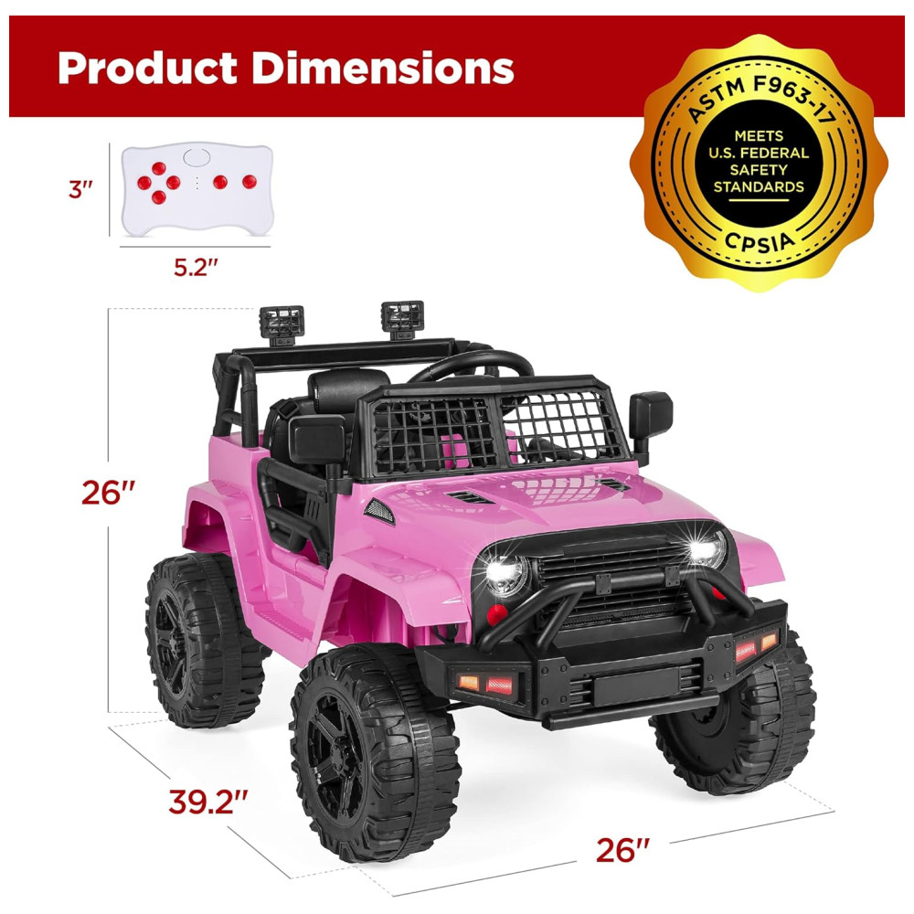 Caminhão Elétrico Infantil Best Choice Products 12V com Controle Remoto dos Pais Suspensão de Molas Luzes de LED e Porta AUX Rosa