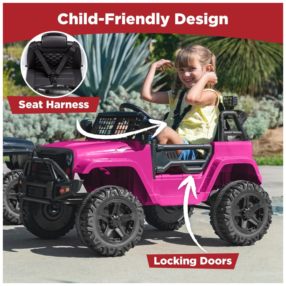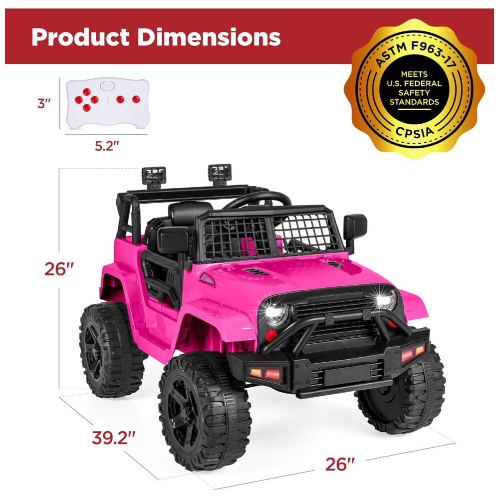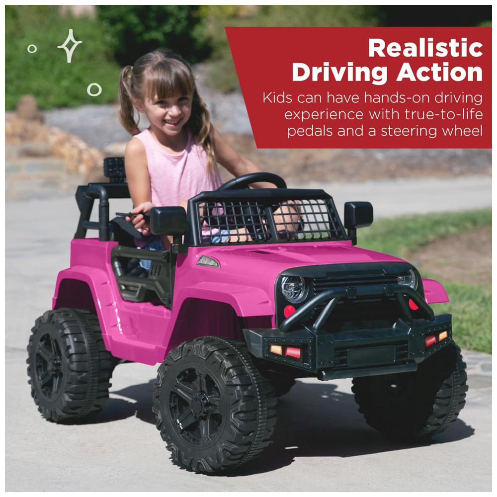 Caminhão Elétrico Infantil Best Choice Products 12V com Controle Remoto para Pais Suspensão de Molas Luzes LED Porta AUX Rosa Vibrante