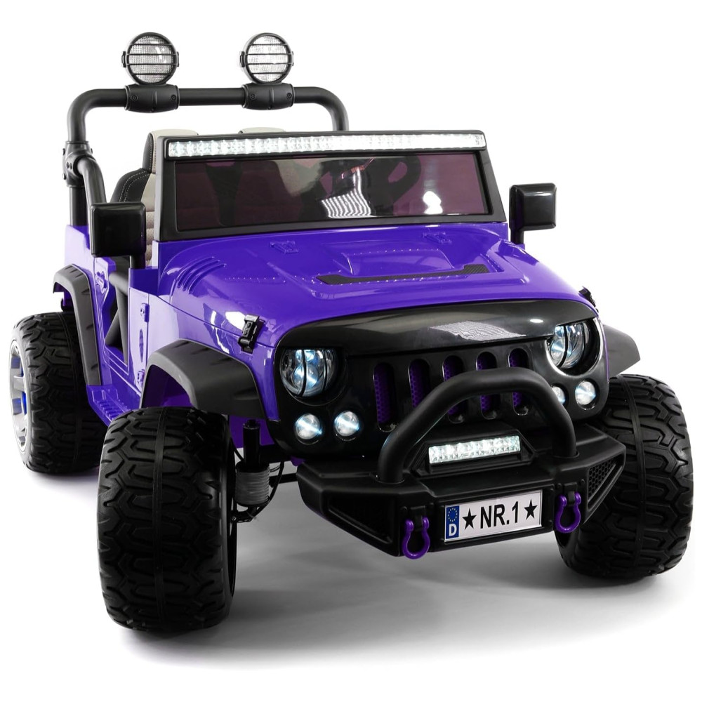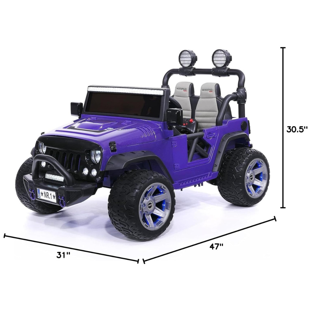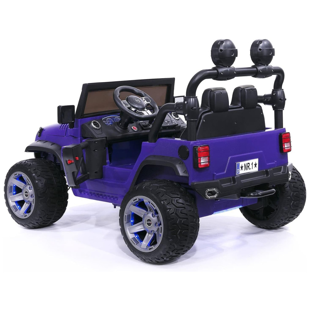 Caminhão Elétrico Infantil Moderno Kids Trail Explorer 2 Lugares 24V c/ Controle Remoto Rodas de Espuma EVA Banco de Couro Bluetooth MP3 Roxo