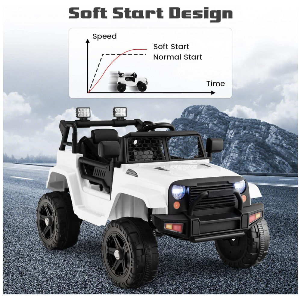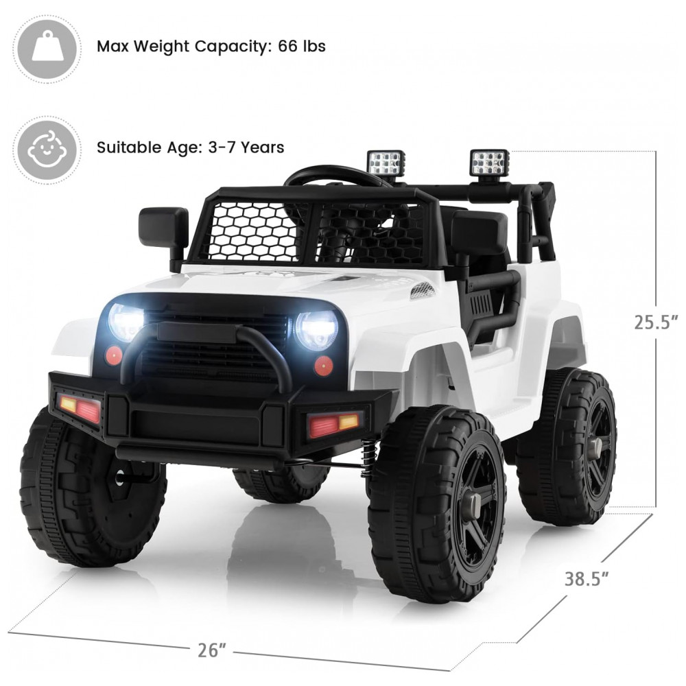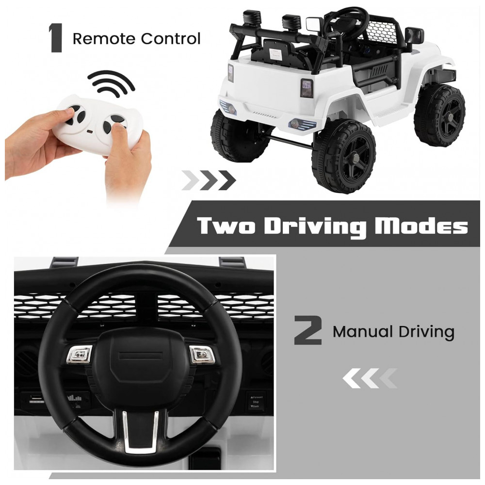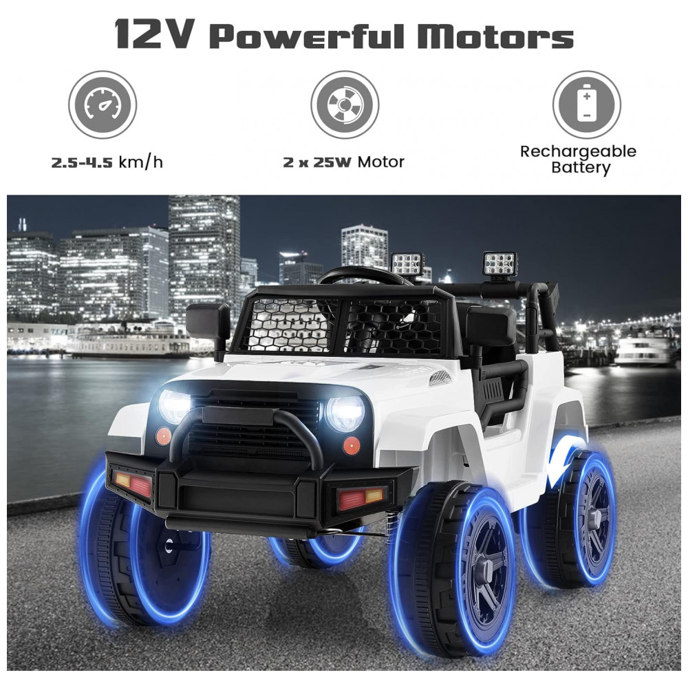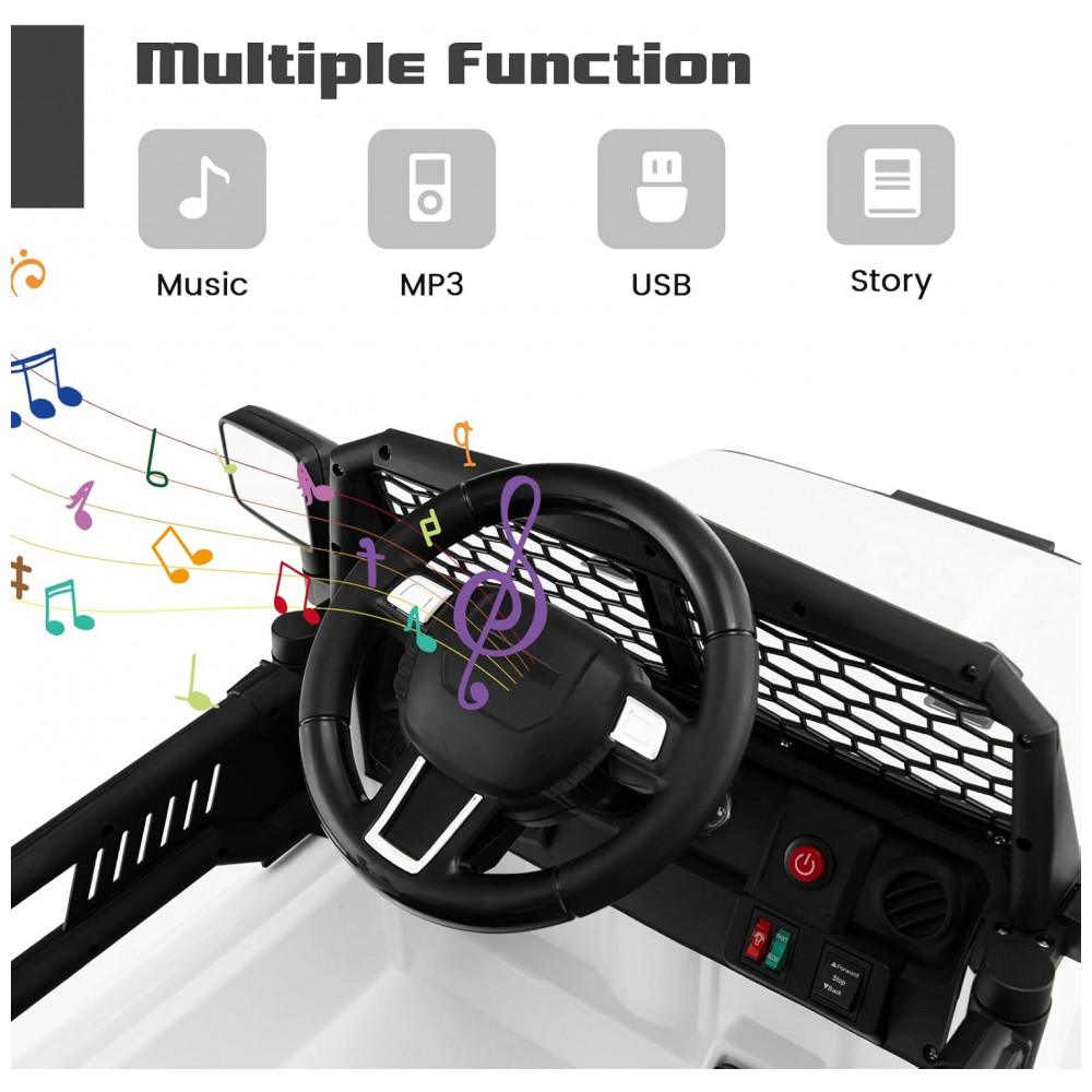 Caminhão Elétrico Infantil OLAKIDS Branco 12V Jeep 2 Velocidades Controle Remoto Suspensão Porta Dupla LED Música USB MP3 TF