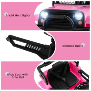 Caminhão Elétrico Infantil OLAKIDS Rosa 12V Jeep 2 Velocidades Controle Remoto Suspensão Porta Dupla LED Música USB MP3 TF