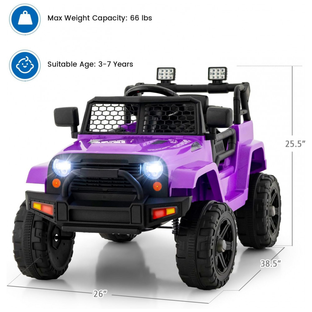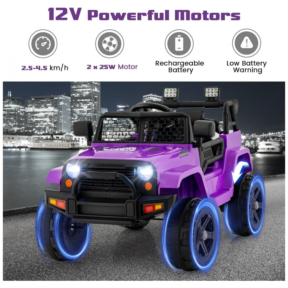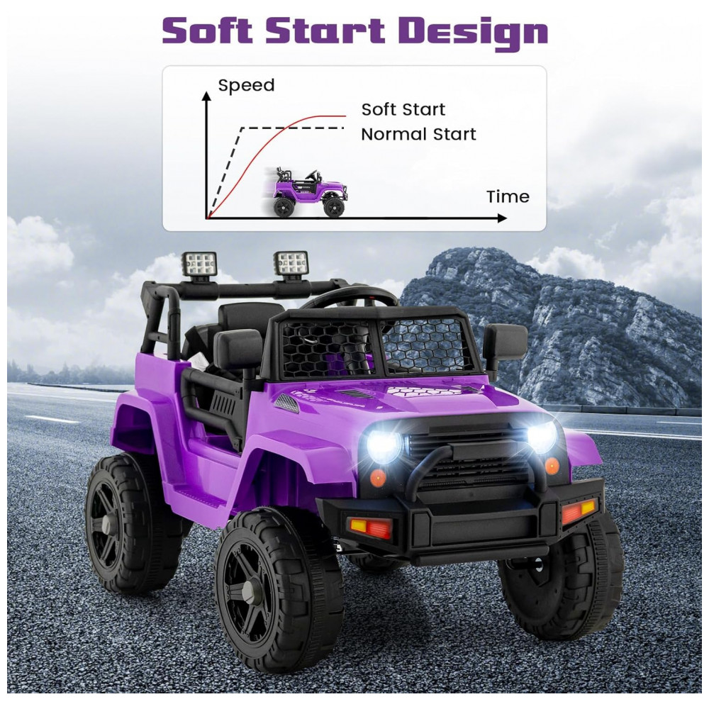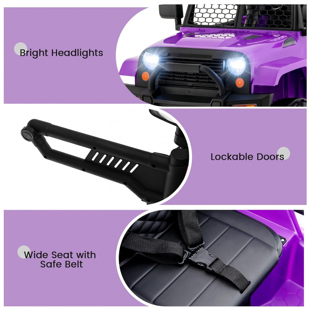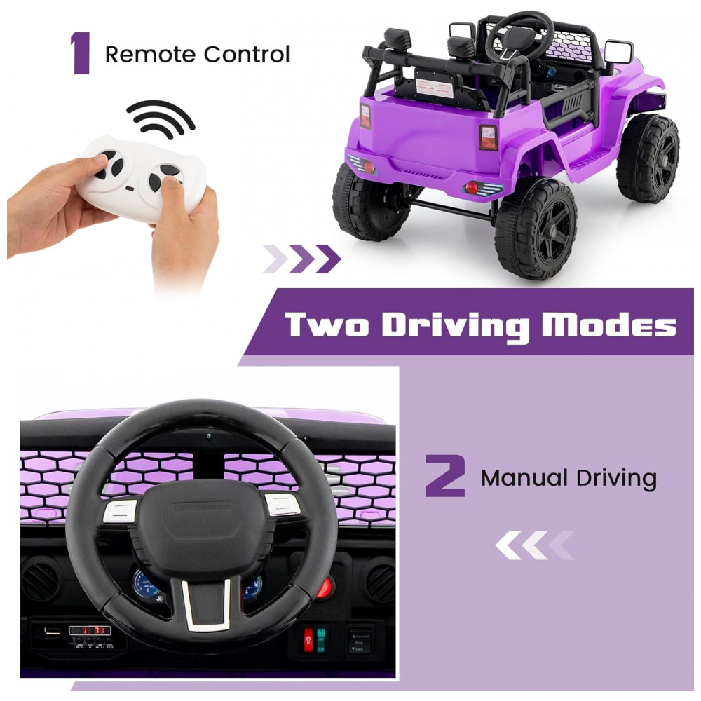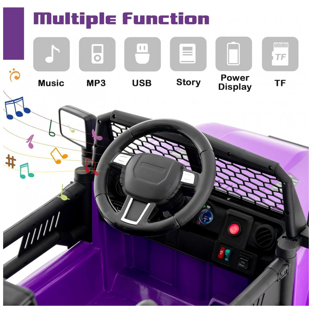 Caminhão Elétrico Infantil OLAKIDS Roxo 12V Jeep 2 Velocidades Controle Remoto Suspensão Porta Dupla LED Música USB MP3 TF