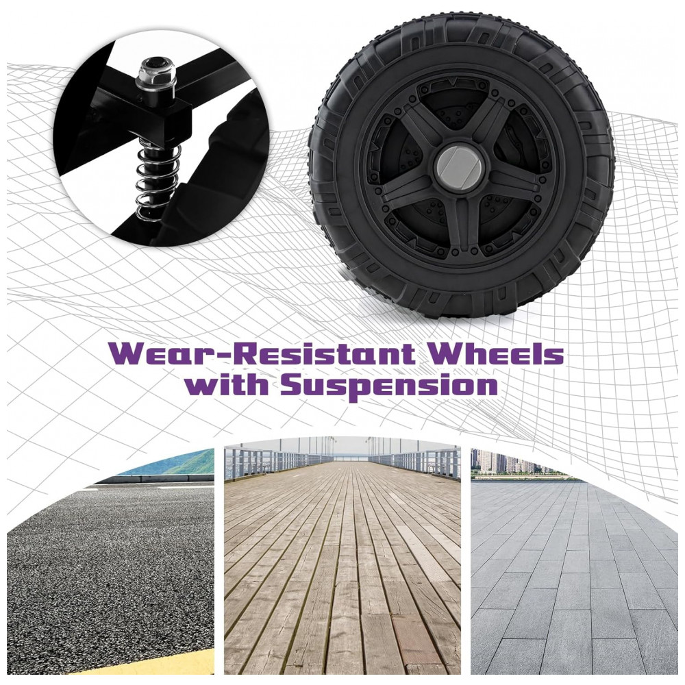 Equipado com dois motores, bateria recarregável de 12V, suspensão traseira por molas e sistema de partida suave, garante percurso estável e seguro em diferentes superfícies. O painel contém funções de música, entrada USB, TF, MP3, histórias, botão de buzina, indicador de bateria e alarme de baixa voltagem, ampliando o entretenimento e o controle do usuário.