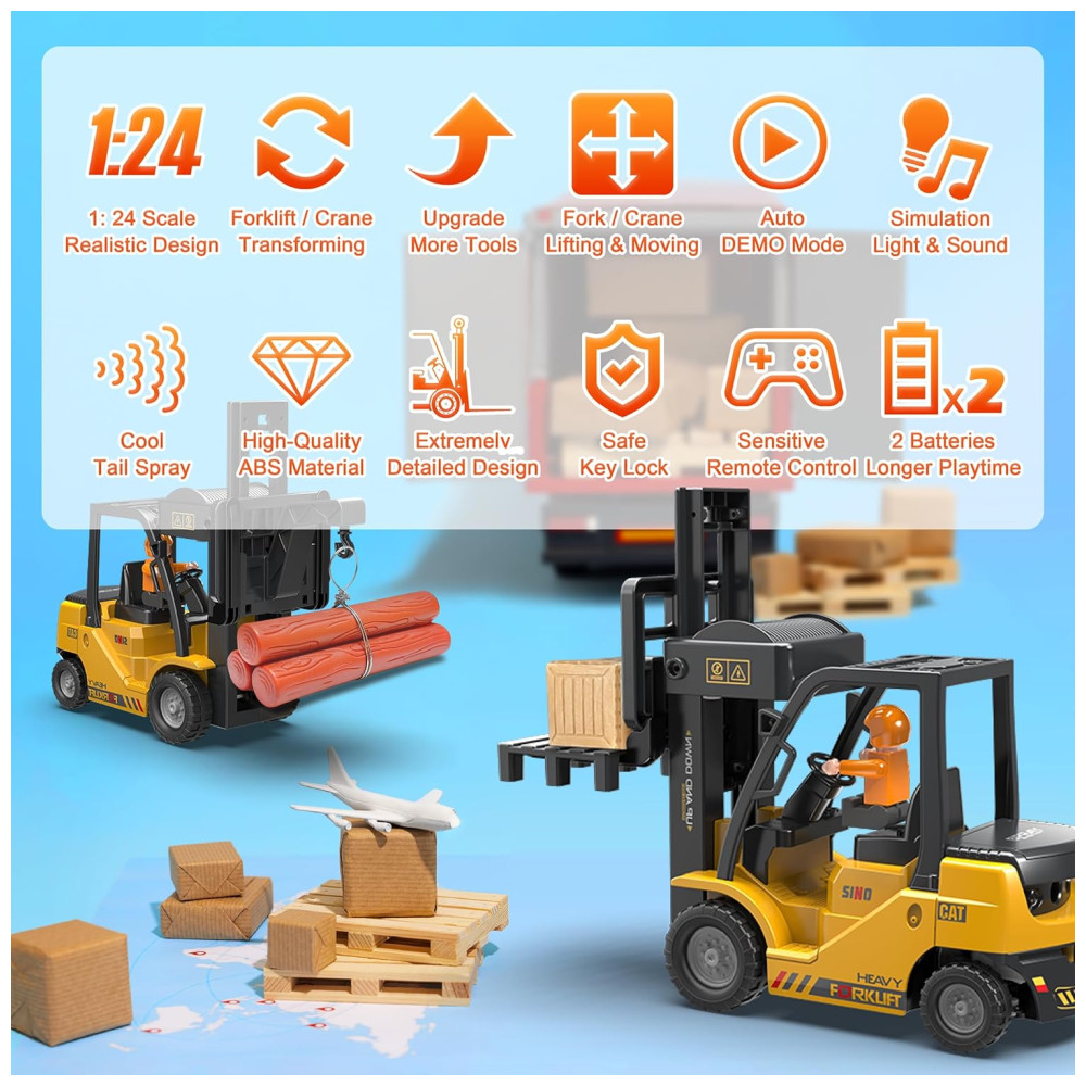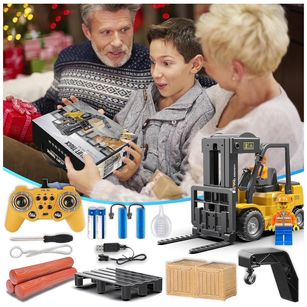 Com o Caminhão Empilhadeira RC 2 em 1, as crianças podem se divertir com um brinquedo versátil que se transforma em um guindaste RC. O controle remoto de 11 canais permite mover, levantar, abaixar e carregar caixas ou levantar madeira, simulando operações reais de empilhadeira. Este brinquedo de empilhadeira proporciona uma experiência realista de simulação de armazém, estimulando a imaginação e habilidades práticas. As crianças podem criar cenas de canteiro de obras ou armazém, completando tarefas e desafios com este veículo de construção RC. Além disso, o brinquedo possui buzina realista, spray d’água e luz, proporcionando uma experiência imersiva. Feito de material premium, o brinquedo é durável e detalhado, com bordas arredondadas e cantos suaves. Inclui 2 baterias recarregáveis para horas de diversão sem interrupções. Ideal para presentear crianças que adoram veículos de construção e brincadeiras imaginativas, o Caminhão Empilhadeira RC é um presente perfeito. Embalado em uma caixa de presente com alça para facilitar a entrega.