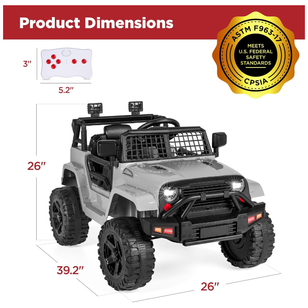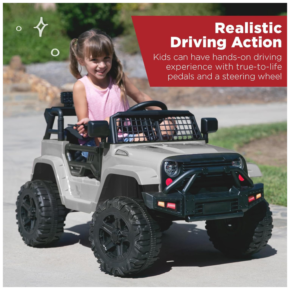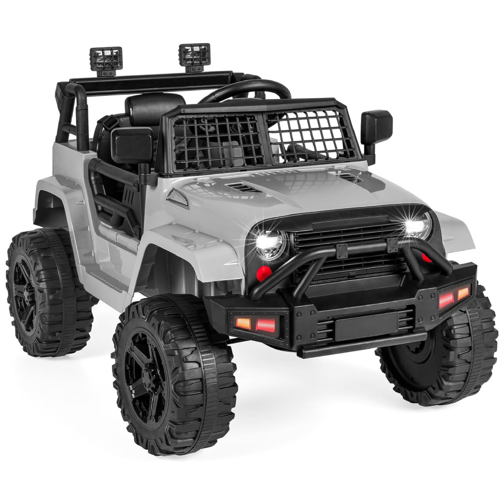 Caminhão Infantil Elétrico 12V Best Choice Products com Controle Remoto para Pais Suspensão Dianteira Faróis de LED Porta AUX – Cinza Claro