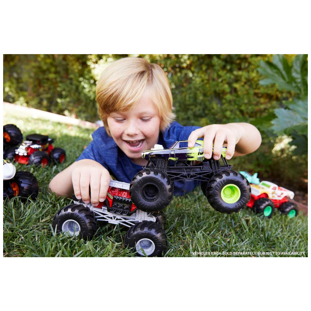 Acelere com esses incríveis Monster Trucks Hot Wheels em escala 124, perfeitos para crianças de 3 anos ou mais. Cada caminhão fundido apresenta detalhes incríveis que dão vida aos personagens do Monster Truck, além de rodas gigantes que aumentam as batidas, quebras e acrobacias. Os fãs podem colecionar seus favoritos do Hot Wheels Monster Trucks Live e recriar momentos épicos do show.