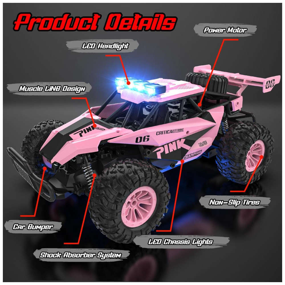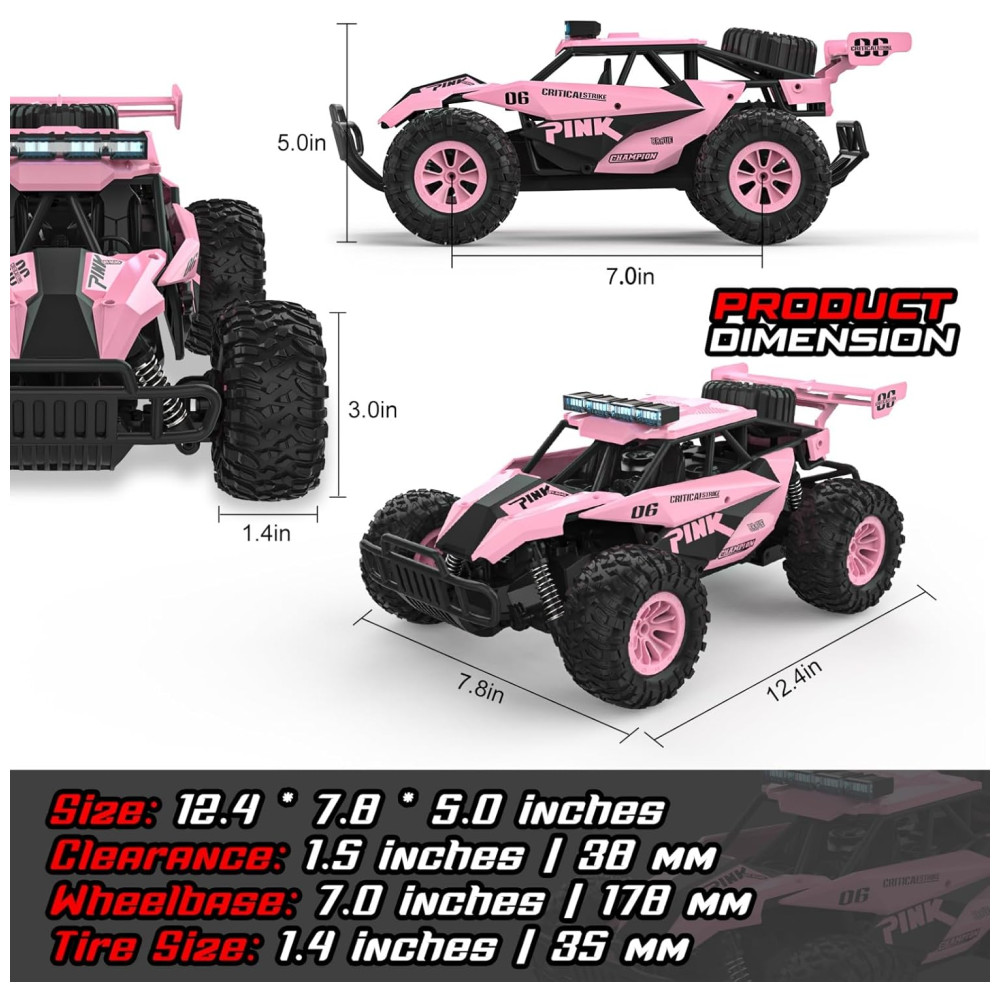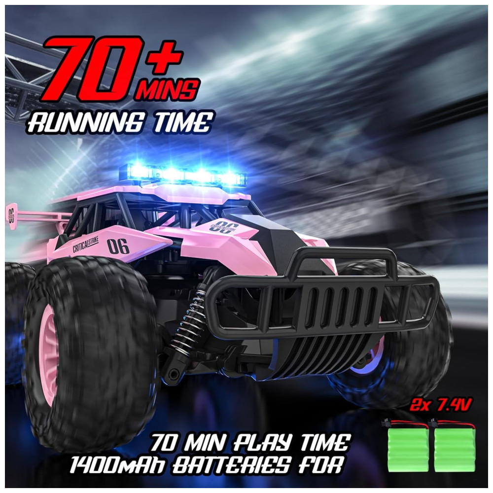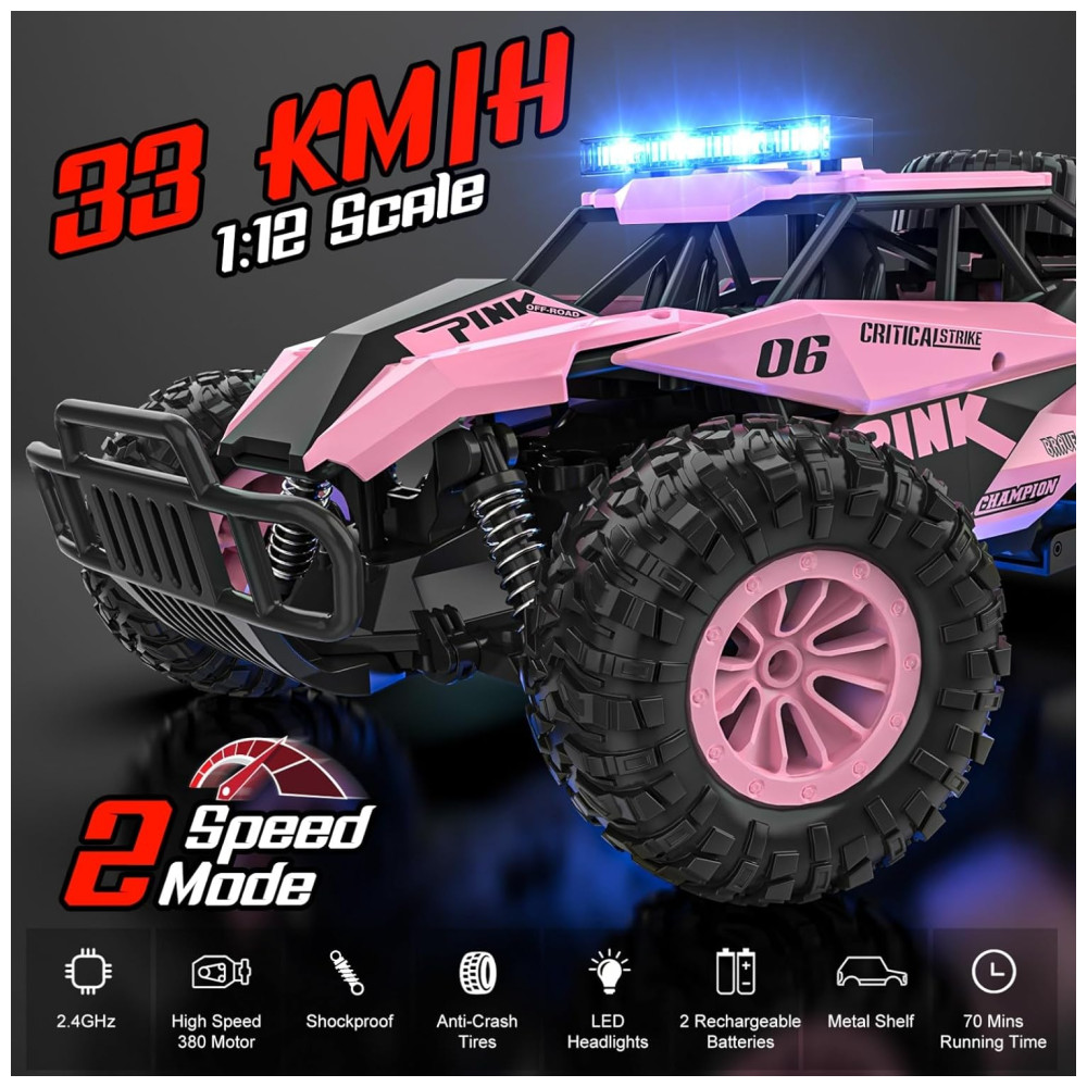 Atingindo velocidades de até 33km/h, o Carro RC 1:12 é potencializado por um forte motor RC 380, proporcionando corridas emocionantes! Com controle remoto de 2.4GHz sem atrasos, alcance de 50 metros e design de caminhão off-road, o carro oferece diversão sem igual. Sua estrutura em ABS e chassi durável em liga de alumínio garantem resistência e leveza. Equipado com faróis e luzes no chassi, o monster truck proporciona jogos noturnos emocionantes. Com bateria recarregável de Li-ion de 7.4V 1400mAh, oferece até 70 minutos de autonomia, permitindo horas de diversão contínua. Um presente incrível para diversas ocasiões, os carros RC da BLUEJAY são perfeitos para momentos em família!