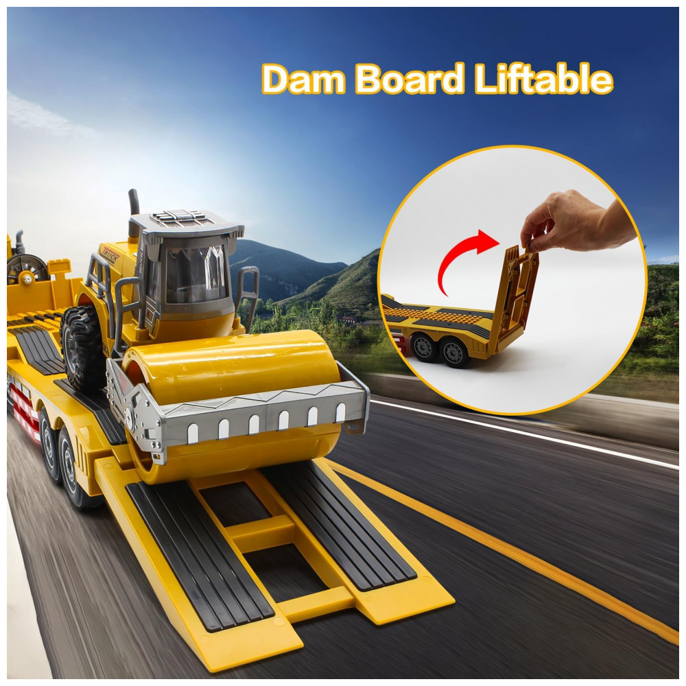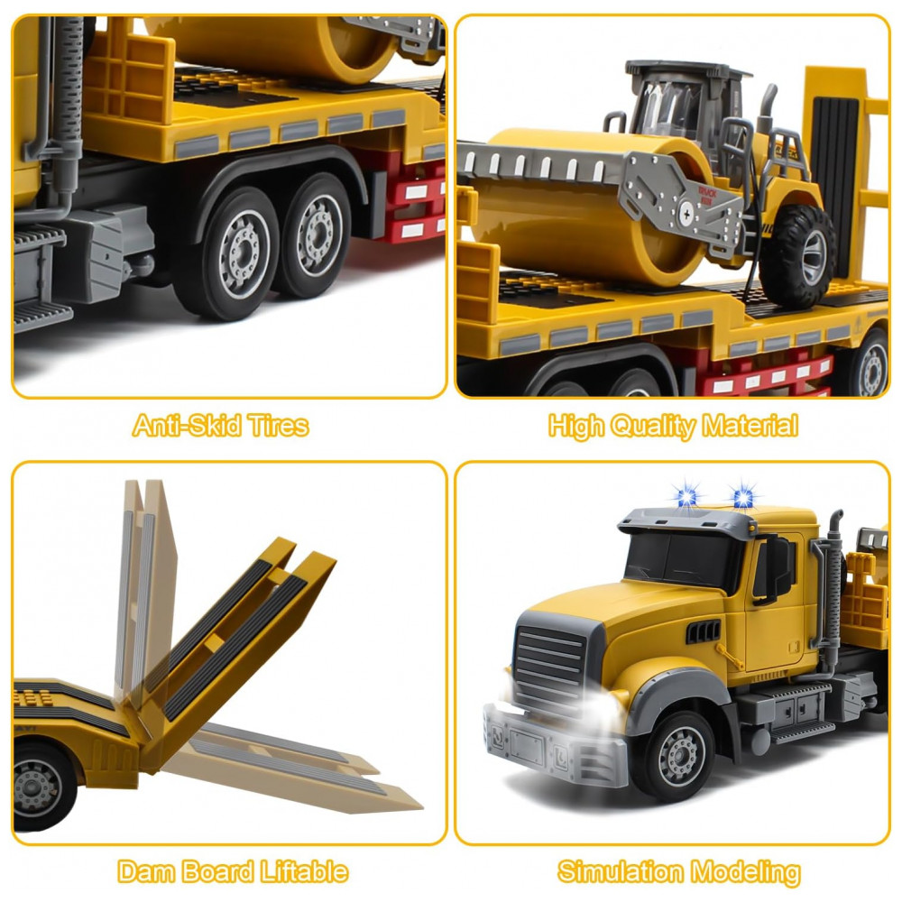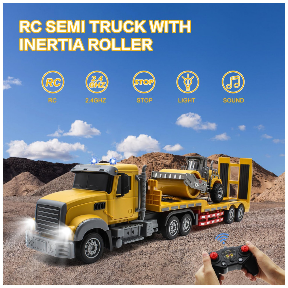 Caminhão RC Fistone com Reboque Trator de Engenharia 1:24 RC com Som e Luzes Caminhão Plataforma de Controle Remoto 2.4Ghz com Rolo Compactador