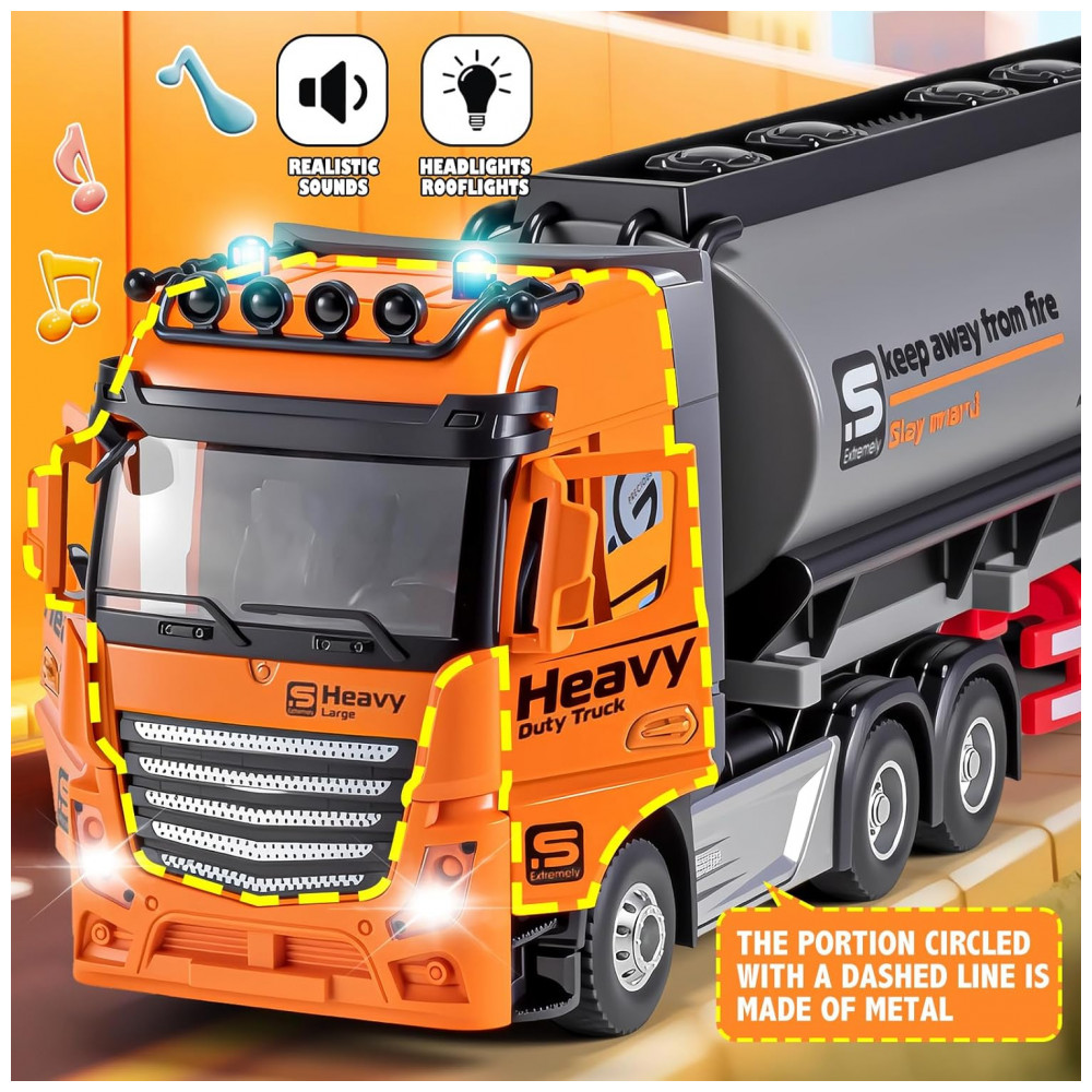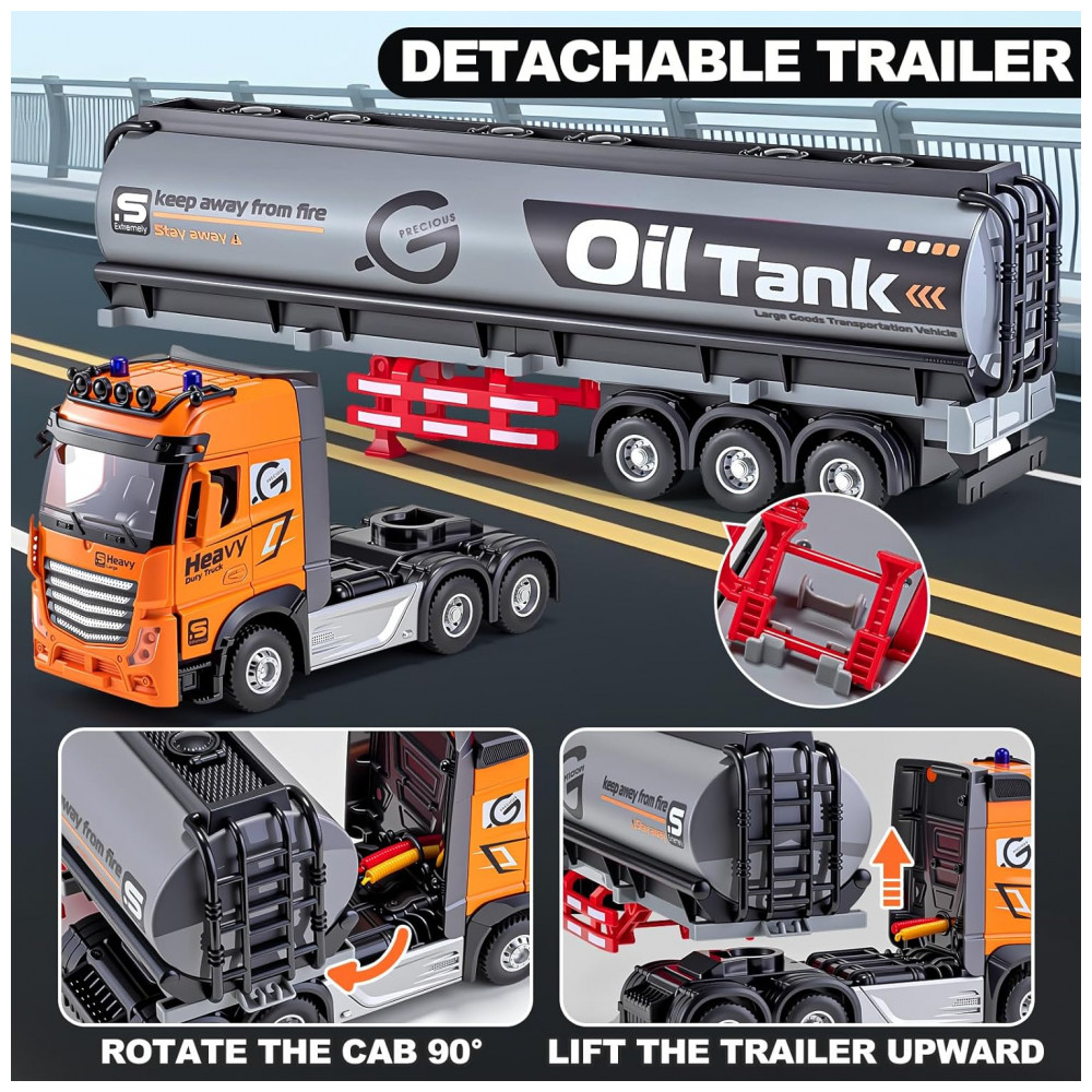 Caminhão Semi Truck de Controle Remoto com 9 Canais e Reboque de Metal Caminhão Tanque de Óleo com Controle Remoto 2.4Ghz Luzes e Sons WEMOKA