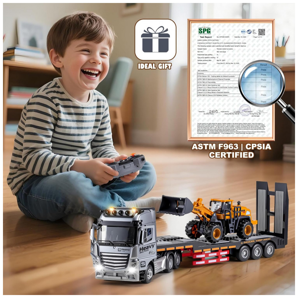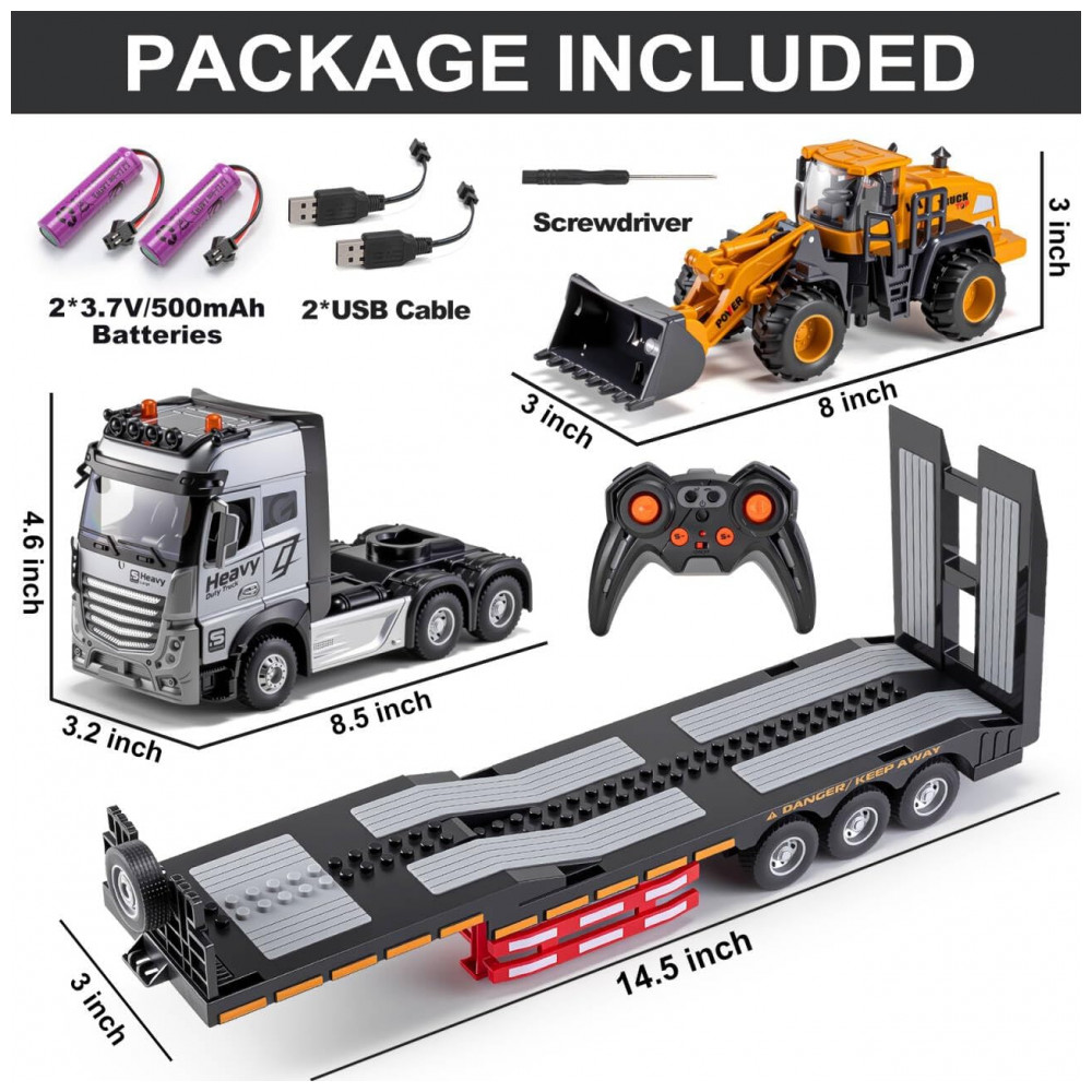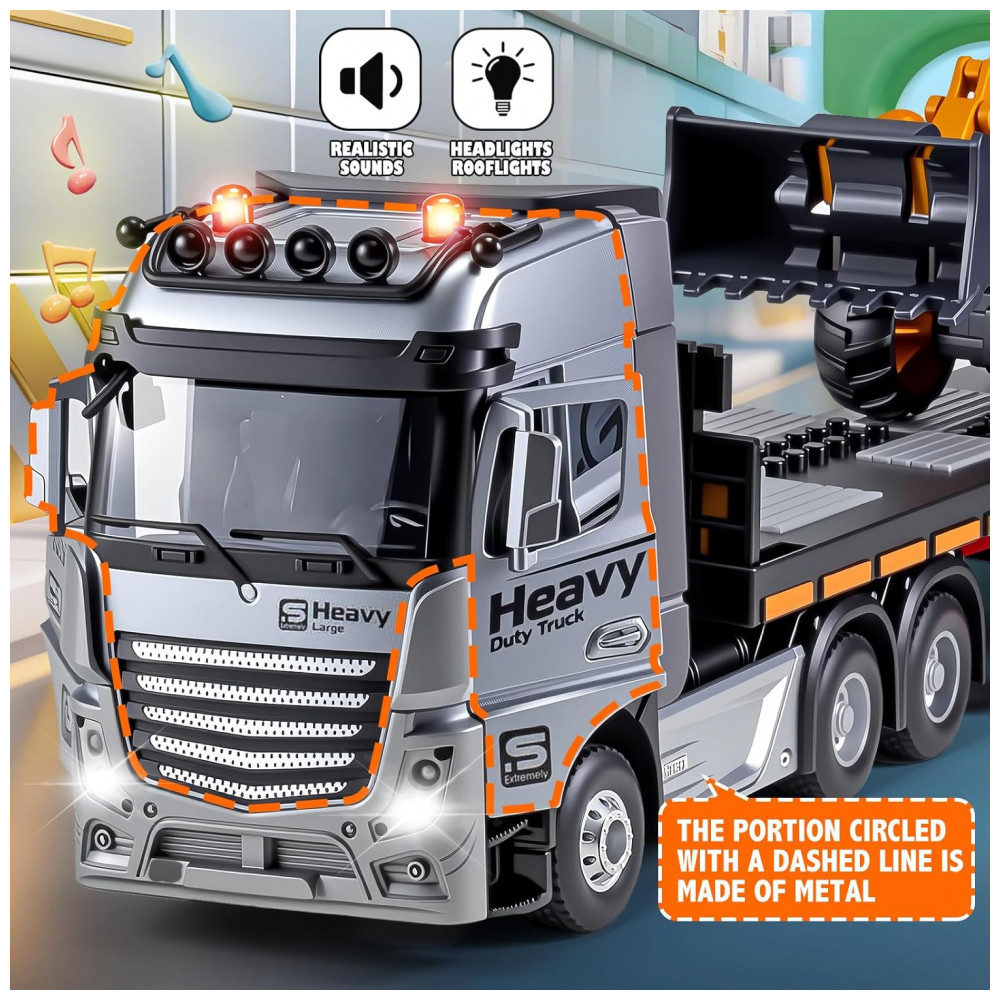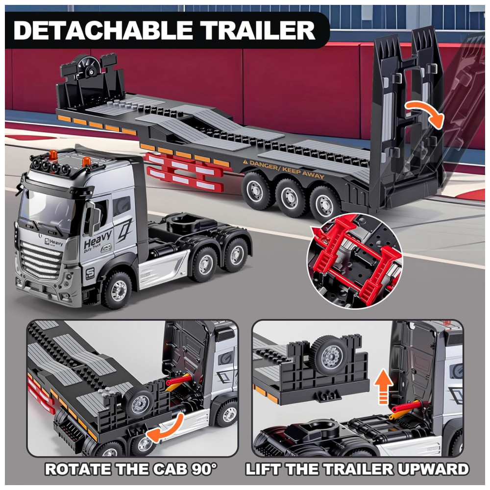 Caminhão Semi Truck de Metal com Cabine Controle Remoto 2.4Ghz e Reboque com Luzes e Sons Presente de Aniversário para MeninosWEMOKA