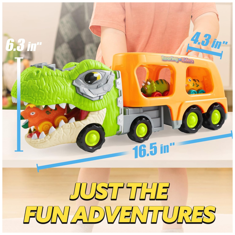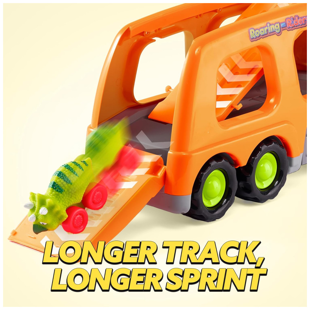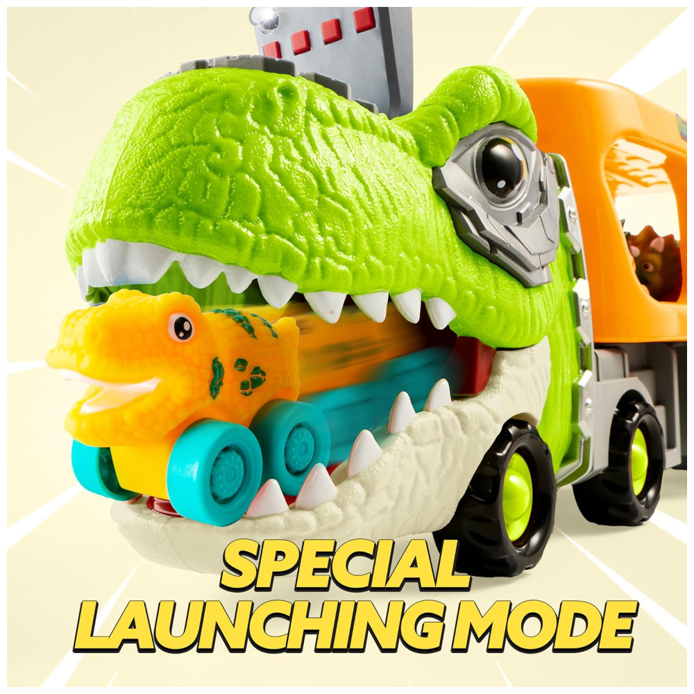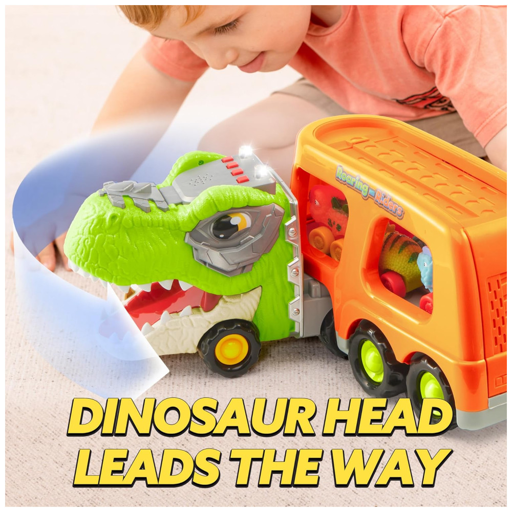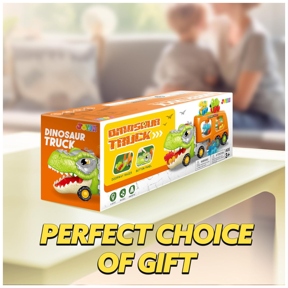 Caminhão Transportador de Dinossauros com 6 Veículos de Borracha Música e Luzes para Crianças Acima de 2 Anos Joyin