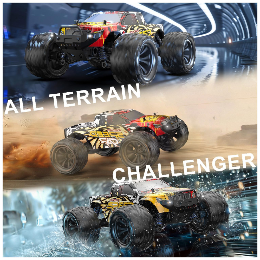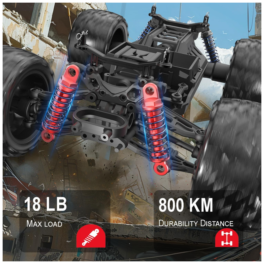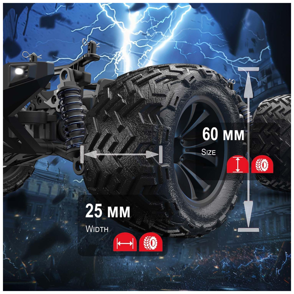 2 baterias e chassi de PA o carro RC está equipado com duas baterias recarregáveis de 7,4 V , 850mAh de alta qualidade, você pode desfrutar da diversão de dirigir por cerca de 40 minutos a mais mais de 20 minutos para cada bateria com este carro de controle remoto . E todo o chassis é feito de nylon que tem muitas propriedades como ser duradouro, resistente a produtos químicos, elástico, isolante, etc. Todas estas propriedades conferem ao camião uma maior resistência à colisão. É a melhor escolha para qualquer entusiasta de monster trucks RC