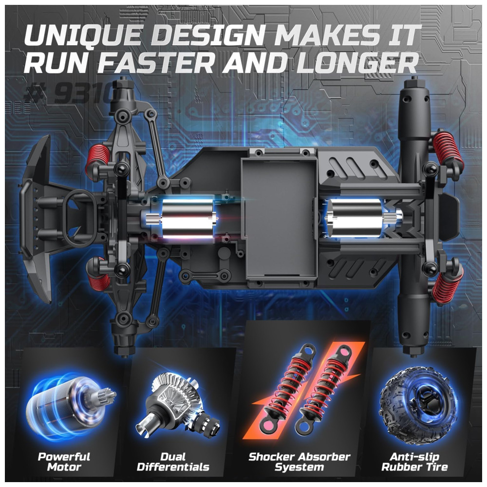 2021 Carro RC de alta velocidade atualizado 118 O carro de controle remoto de alta velocidade 9300 recém atualizado tem pneus maiores e linhas de pneu recém projetadas, o que lhe dá uma aderência mais forte. A folha de metal do cubo bem projetada aumenta a resistência do cubo para evitar a deformação causada pela colisão. Também o equipamos cuidadosamente com uma escova e um bolso com cordão, que o ajudarão a manter o carro RC arrumado e a guardar os acessórios. Tudo que você precisa para se divertir está na caixa, não hesite em aderir ao DEERC