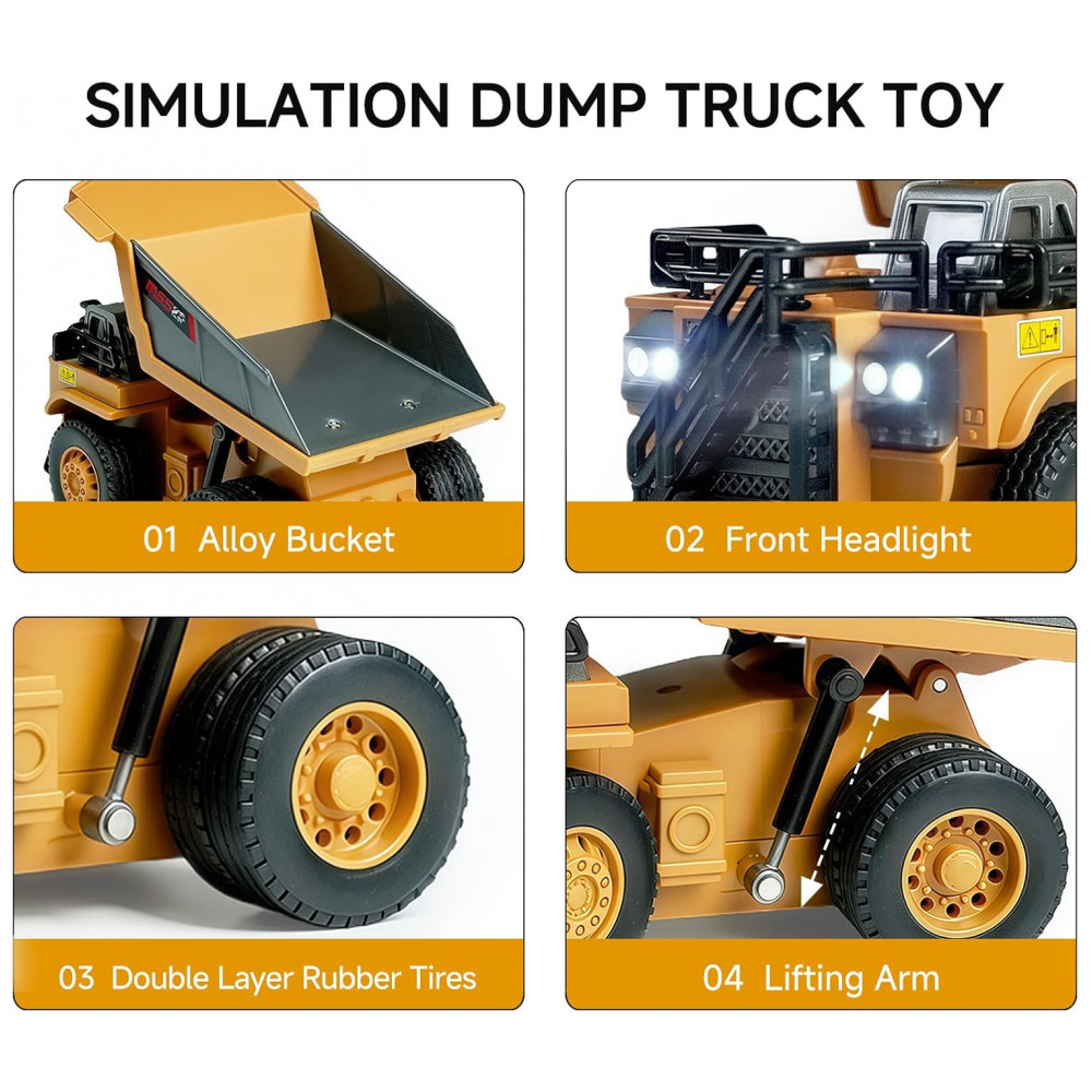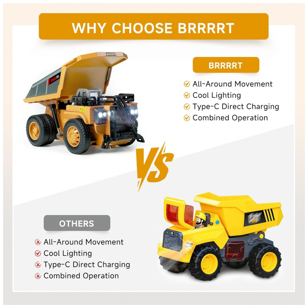 Camionete Basculante Miniatura BRRRRT 164 RC Brinquedo Caminhão Basculante Controle Remoto 8 Canais com Carroceria de Metal e Luz