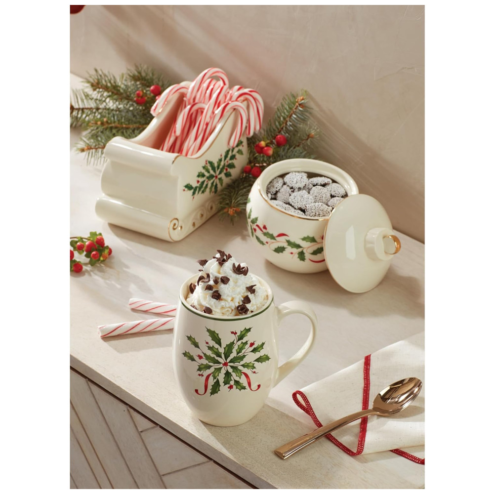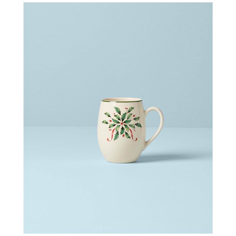 Caneca com Tema de Natal Material de Cerâmica e Capacidade de 530mL Lenox 890776 Branca Verde e Vermelha