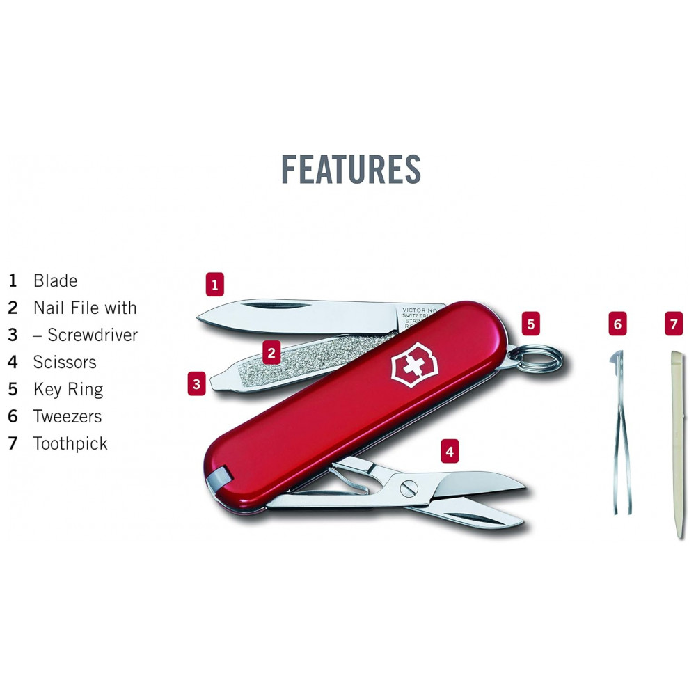 Canivete Multifuncional 7 Funções em Aço Inoxidável Victorinox Classic SD Vermelho