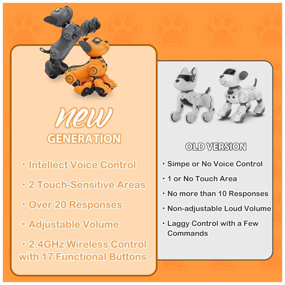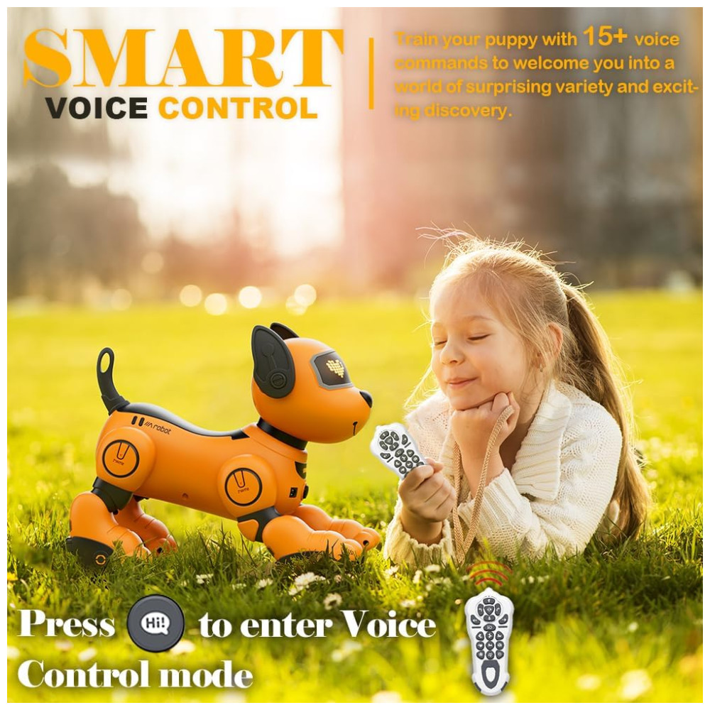Cão Robô Interativo com Controle Remoto de Voz e Sensores para Crianças com Mais de 5 Anos Vatos Laranja