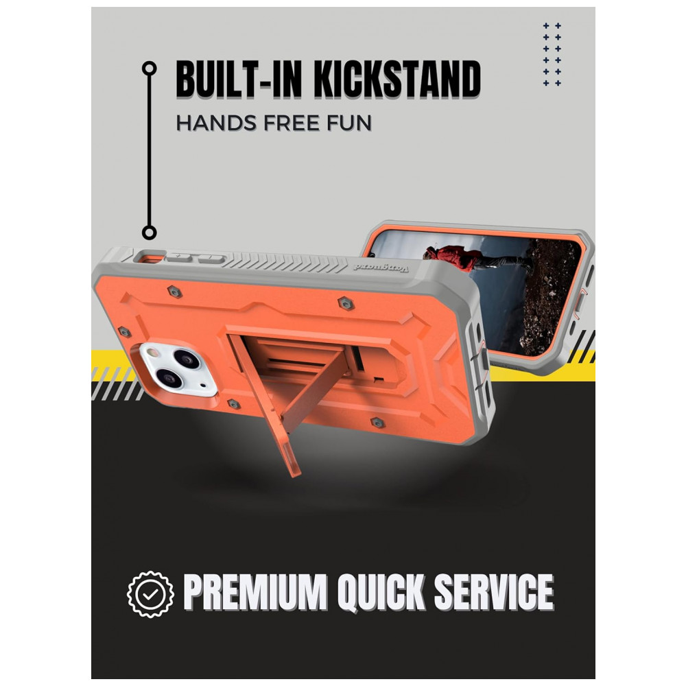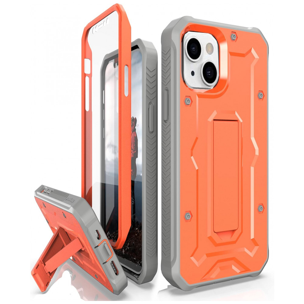 Compatível com iPhone 14 e iPhone 13 Estojo ultraprotetor de corpo inteiro testado contra quedas de nível militar com um suporte integrado, confiável em todas as condições e adequado para crianças.