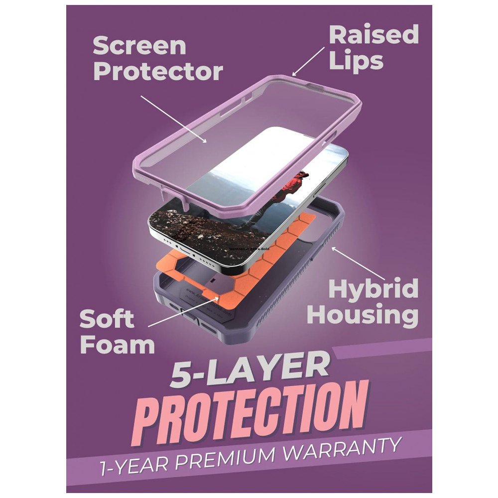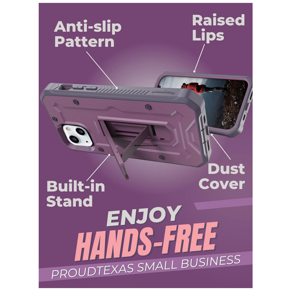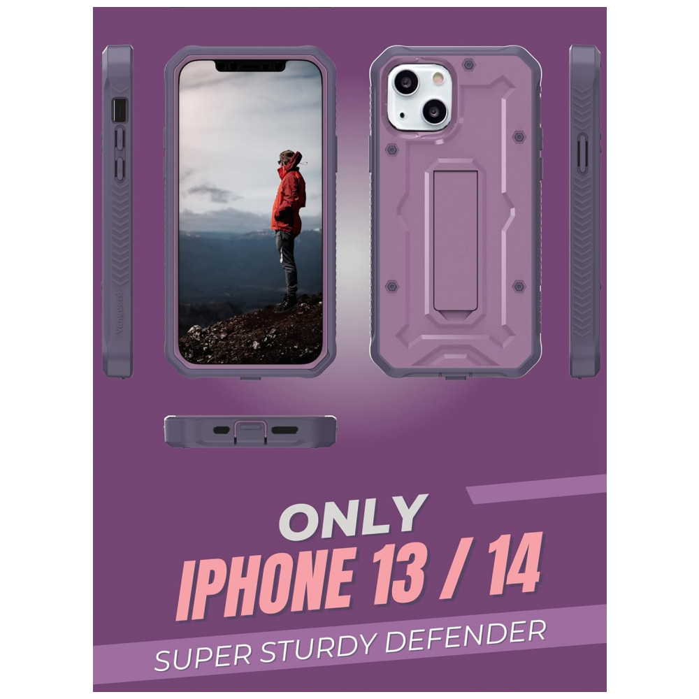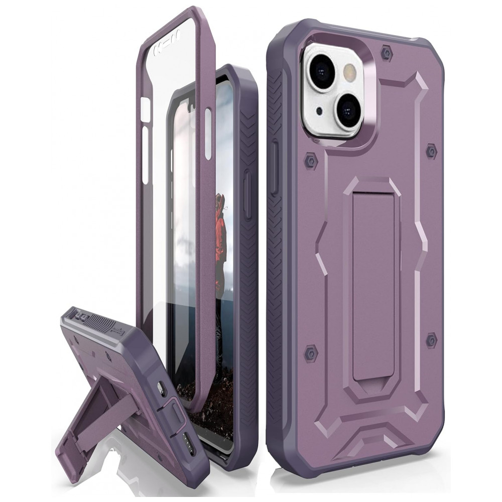 Compatível com iPhone 14 e iPhone 13 Estojo ultraprotetor de corpo inteiro testado contra quedas de nível militar com um suporte integrado, confiável em todas as condições e adequado para crianças.