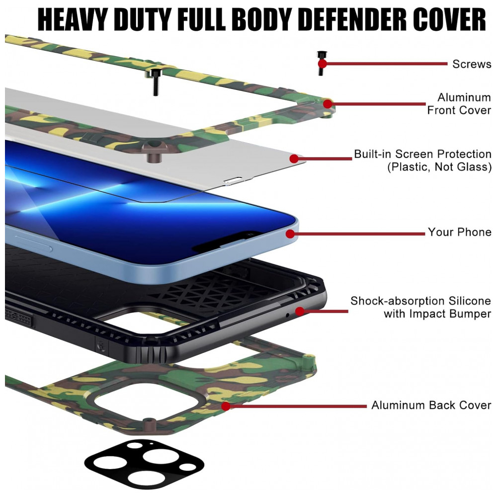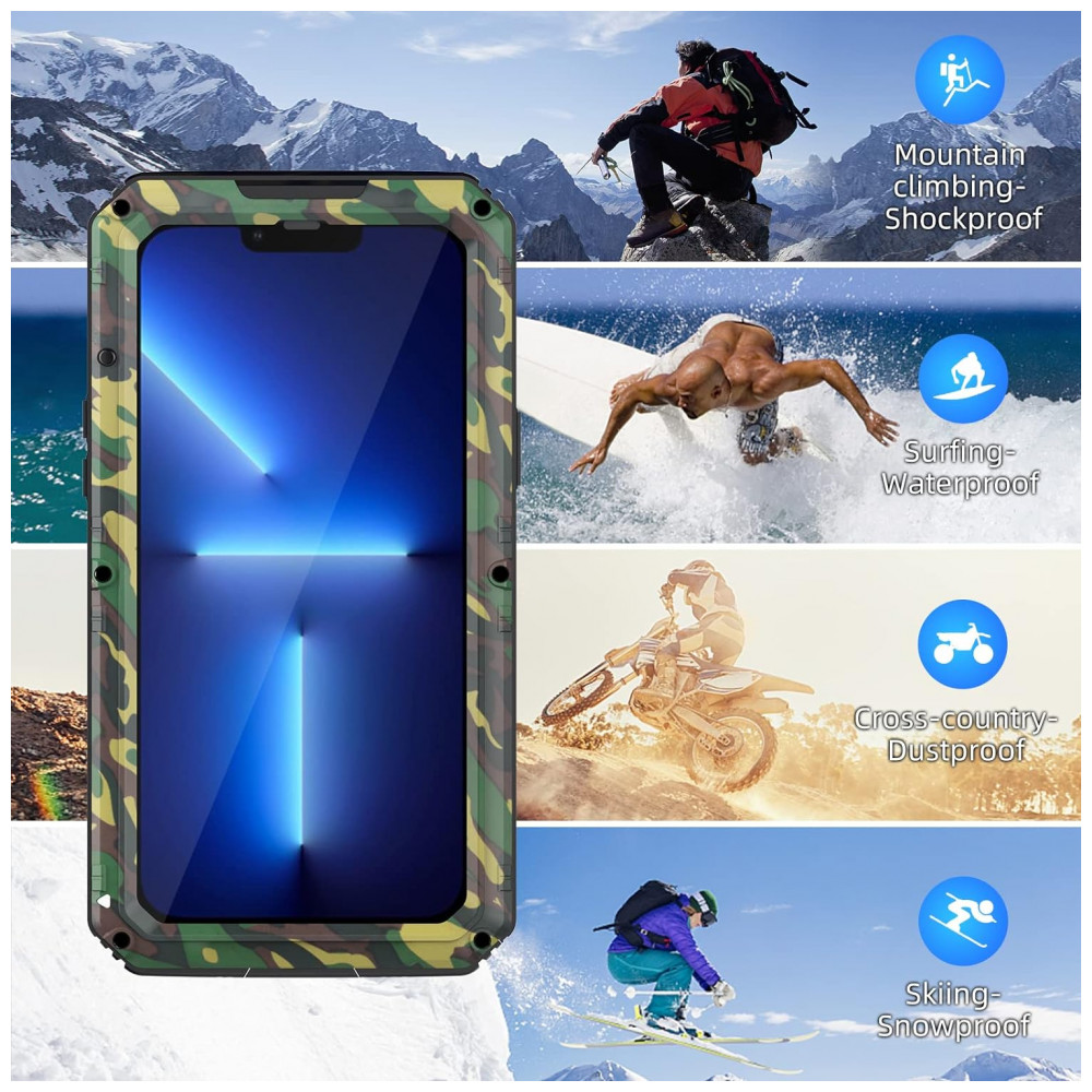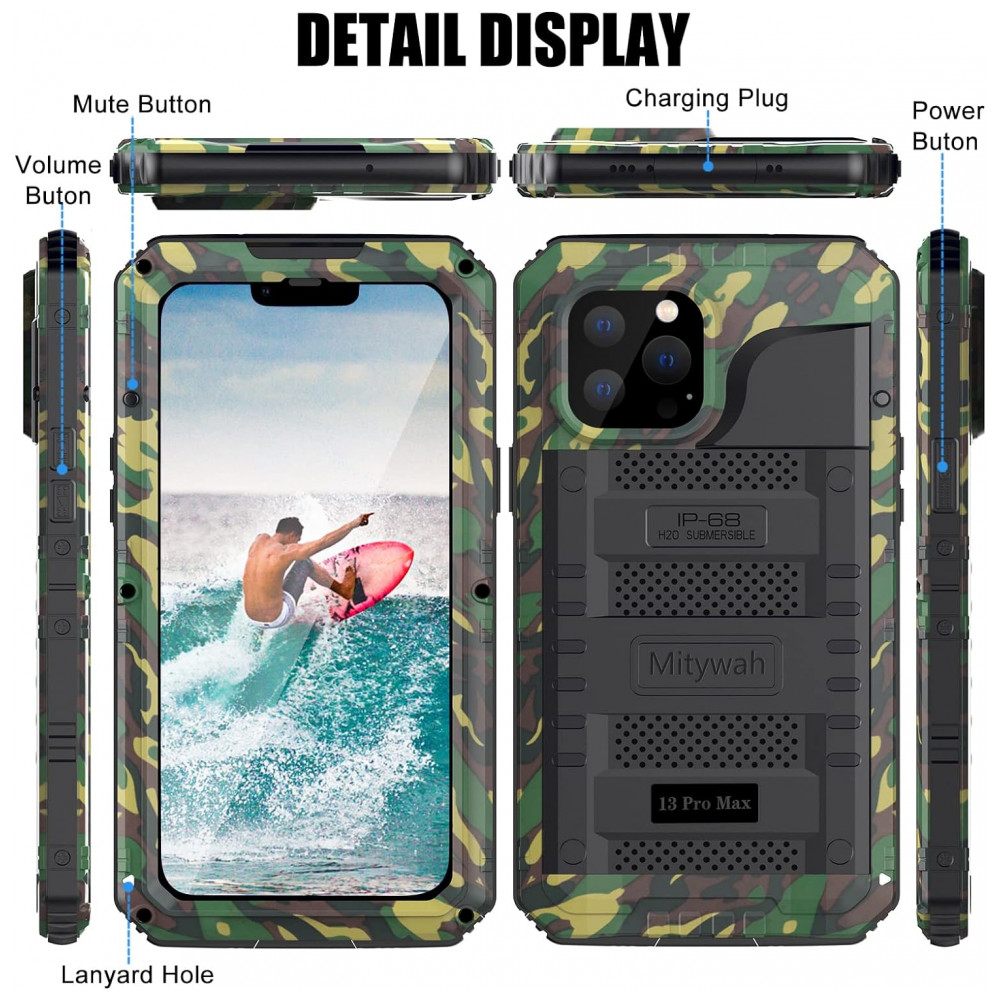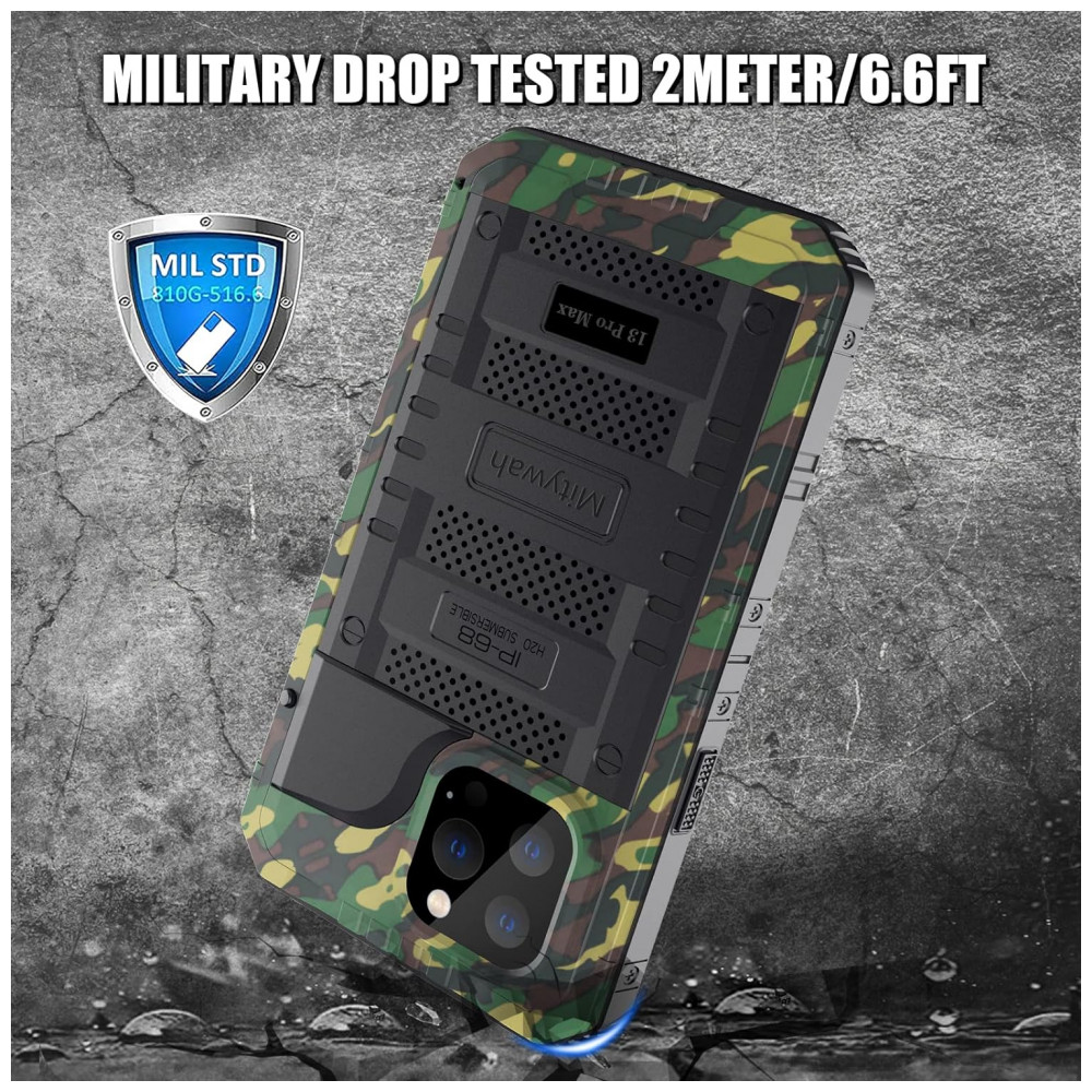 Capa para Iphone 13 Pro Max com Protetor de Tela Embutido e à Prova dÁgua Mitywah Verde Camuflada