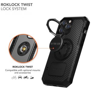 TWIST LOCK Use o RokLock Twist Lock System integrado para montar esta capa para iPhone 13 Pro Max em sua motocicleta, UTV, ATV, bicicleta ou carrinho de bebê. Todas as montagens são vendidas separadamente.