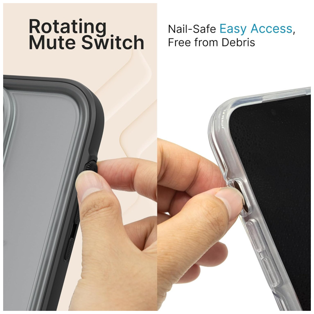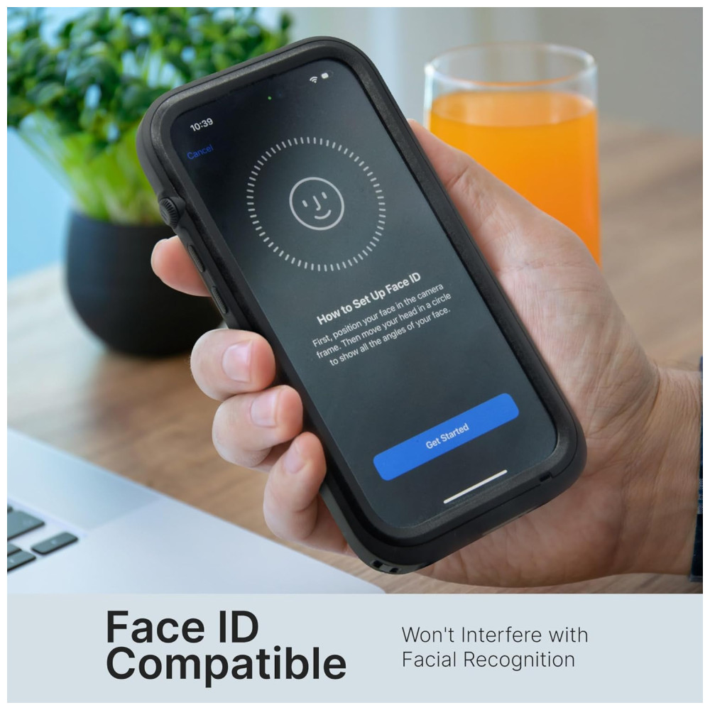 Tela e botões altamente responsivos O Face ID funciona com a capa do dispositivo e o protetor de tela embutido fica plano e não forma bolhas, garantindo que a tela sensível ao toque seja altamente responsiva. Como sempre, o estojo transparente e durável mostra o iPhone, permanece livre de impressões digitais, apresenta botões táteis altamente responsivos, um plugue de porta de carregamento flexível e seu interruptor de mudo giratório patenteado exclusivo, que permite acesso fácil e para unhas e livre de detritos