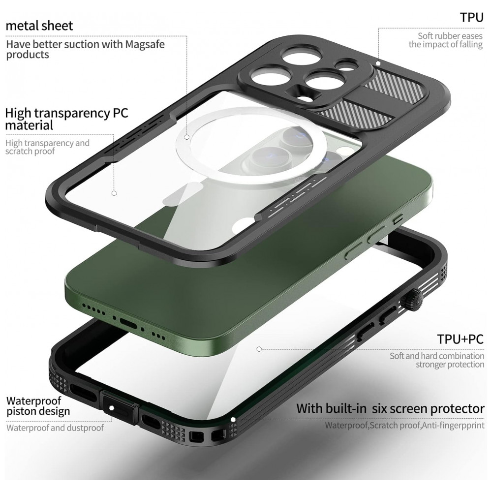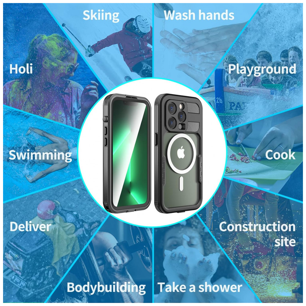 À prova dágua Esta capa para iPhone 14 Pro tem certificação IP68 à prova dágua, submersa a 1,5 m por 1 hora. E a capa para iPhone 14 Pro é perfeita para atividades ao ar livre como natação, mergulho com snorkel, surfe e muito mais. Sugerimos fazer um teste à prova dágua no estojo antes de colocá lo na água com um telefone dentro. Além disso, o carregamento sem fio é compatível.