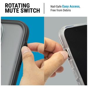 Tela e botões altamente responsivos O Face ID funciona com a capa do dispositivo e o protetor de tela embutido fica plano e não forma bolhas, garantindo que a tela sensível ao toque seja altamente responsiva. Como sempre, o estojo transparente e durável mostra o iPhone, permanece livre de impressões digitais, apresenta botões táteis altamente responsivos, um plugue de porta de carregamento flexível e seu interruptor de mudo giratório patenteado exclusivo, que permite acesso fácil e para unhas e livre de detritos