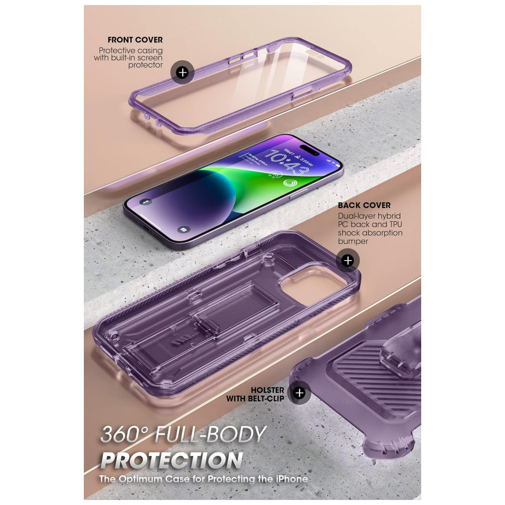 Capa para Iphone 14 Pro Max com Protetor de Tela Embutido e Clipe de Cinto SUPCASE Roxa