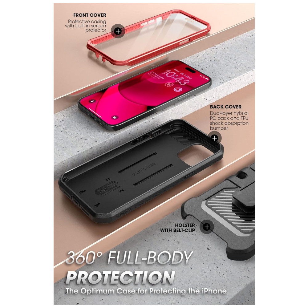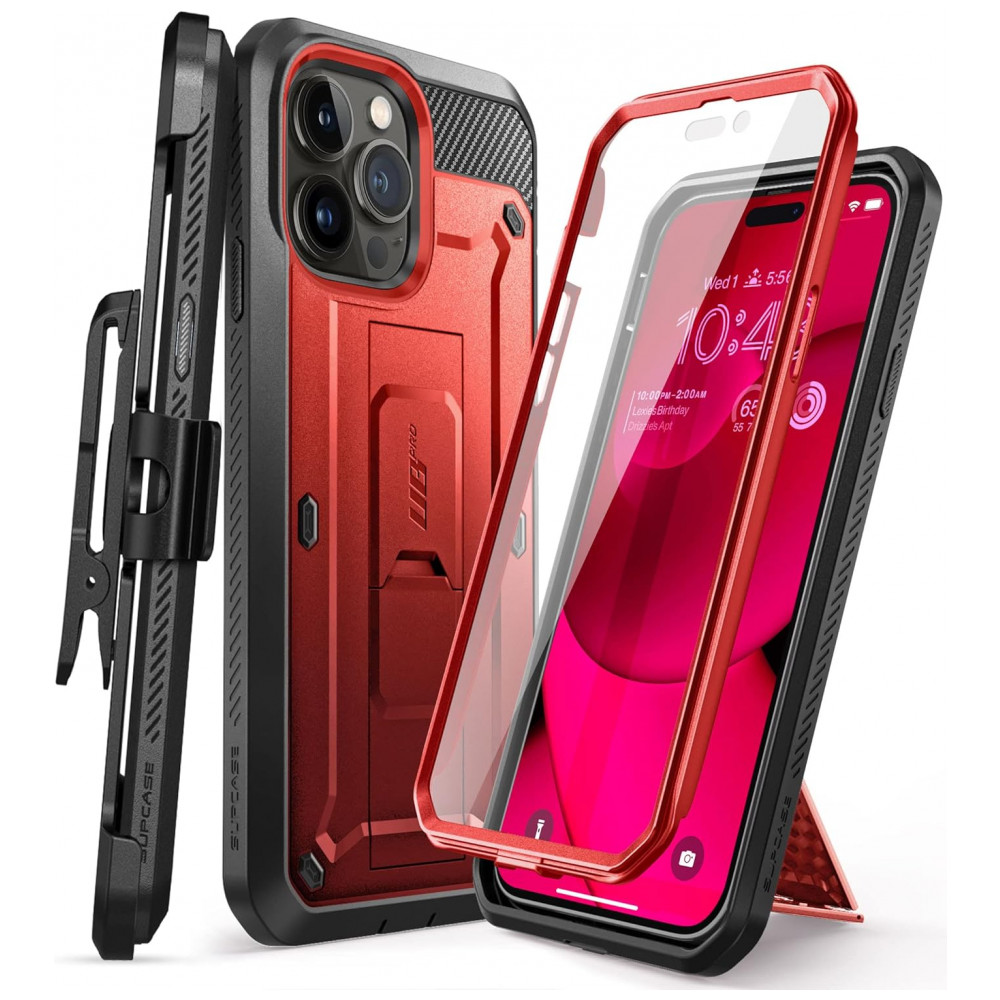 Capa para Iphone 14 Pro Max com Protetor de Tela Embutido e Clipe de Cinto SUPCASE Vermelha