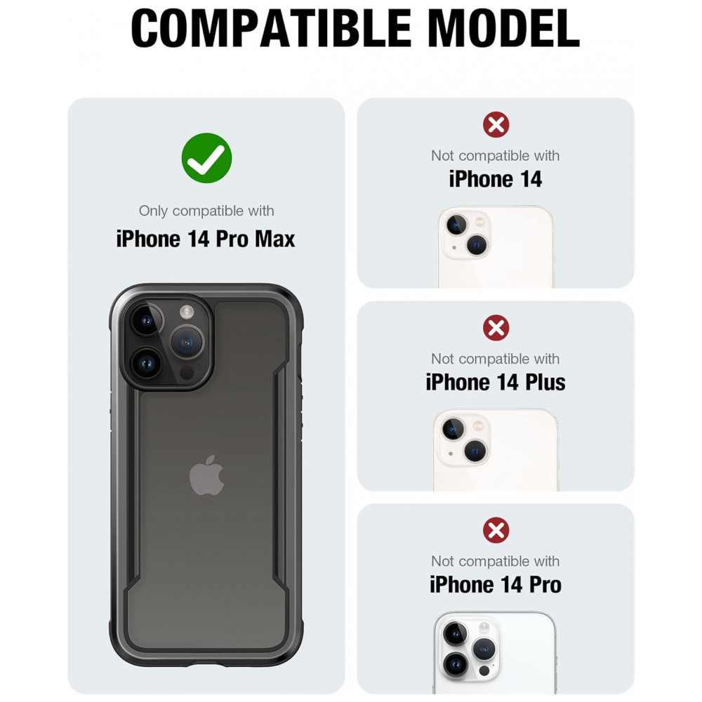 BEZEL LEVANTADO O lábio levantado protege a tela do seu iPhone14 Pro Max contra quedas e arranhões na superfície. NÃO vem com capa frontal ou protetor de tela 14 Pro Max.