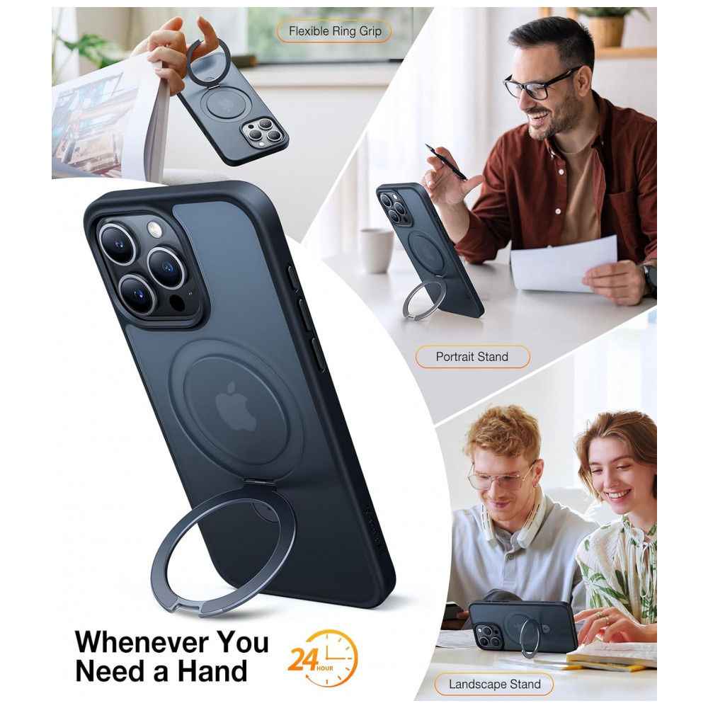 Suporte funcional e prático É um excelente estojo resistente e funcional de 3 vias com um suporte prático embutido feito de alumínio aeroespacial leve e sólido. Esta capa suporta firmemente o seu telefone no modo retrato e paisagem, permitindo que você assista seus programas de TV favoritos ou Facetime sua família. Com base no design ergonômico, oferece o melhor ângulo de visão para o nível dos seus olhos. O suporte também facilita segurar com uma mão.