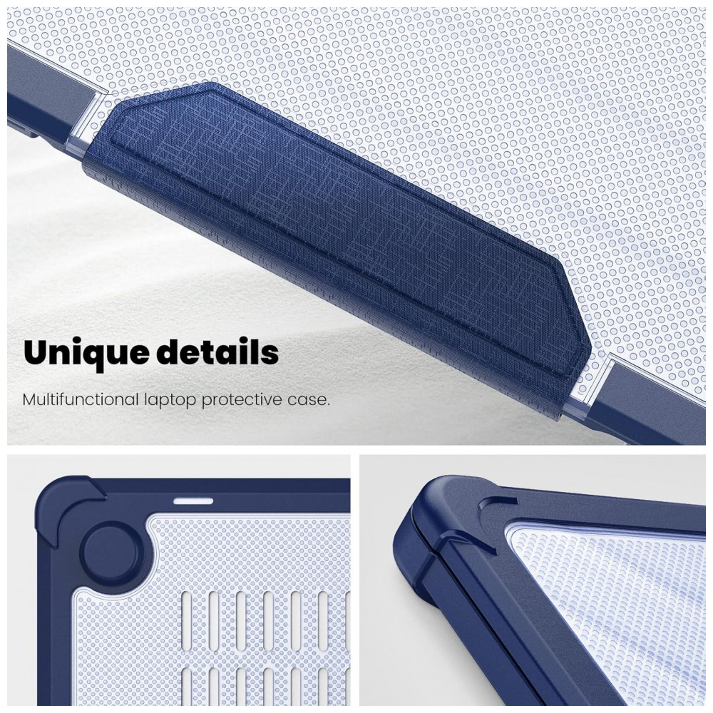 A capa rígida antichoque MEEgoodo na cor Navy Blue XK foi especialmente desenvolvida para o MacBook Air de 15 polegadas, compatível com os modelos A3241 (M4, 2025), A3114 (M3, 2024) e A2941 (M2, 2023). Confeccionada em policarbonato rígido de alta qualidade com bordas flexíveis em TPU, esta capa oferece proteção total contra quedas, arranhões e deslizamentos, garantindo segurança e preservação da estética sofisticada do laptop. O design em favo de mel, aliado a aberturas estratégicas, permite dissipação eficiente de calor, mantendo o dispositivo seguro mesmo em uso prolongado.