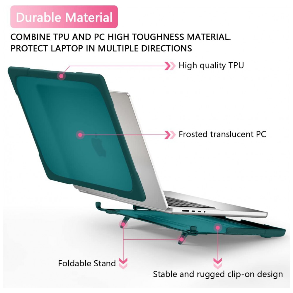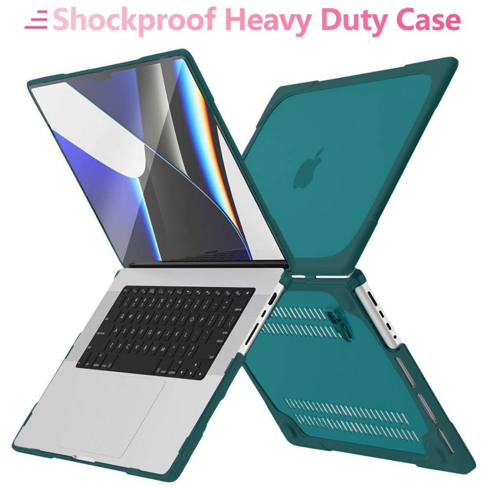 Capa Rígida Antichoque para MacBook Pro 16″ (Modelo A2485 – 2021/2022) com Suporte Dobrável e Acessórios – Cor Ciano escuro