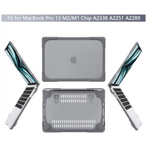 Capa Rígida Batianda para MacBook Pro 13″ – Modelos A2289 A2251 A2338 M1/M2 com Suporte Dobrável Tampa de Teclado e Película de Tela – Cinza