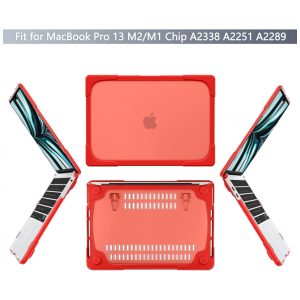 Capa Rígida Batianda para MacBook Pro 13″ – Modelos A2289 A2251 A2338 M1/M2 com Suporte Dobrável Tampa de Teclado e Película de Tela – Vermelho