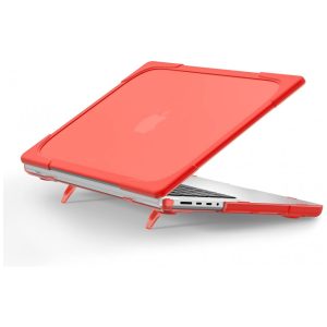 Capa Rígida Batianda MacBook Pro 14″ Vermelha – Modelos A2992 A2918 A2779 A2442 com Suporte Dobrável e Proteção Completa