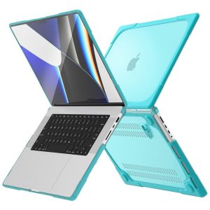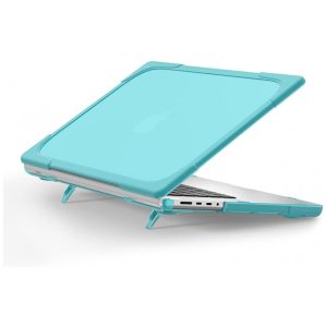 Capa Rígida Batianda MacBook Pro 16″ Azul Claro – Modelos A3403 A3186 A2991 A2780 A2485 com Suporte Dobrável