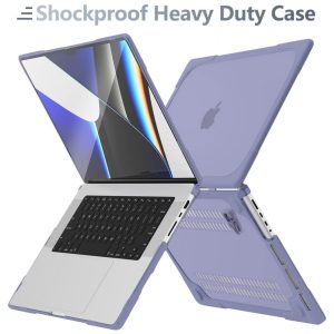 Capa Rígida Batianda MacBook Pro 16″ Lavanda Cinza – Modelos A3403 A3186 A2991 A2780 A2485 com Suporte Dobrável