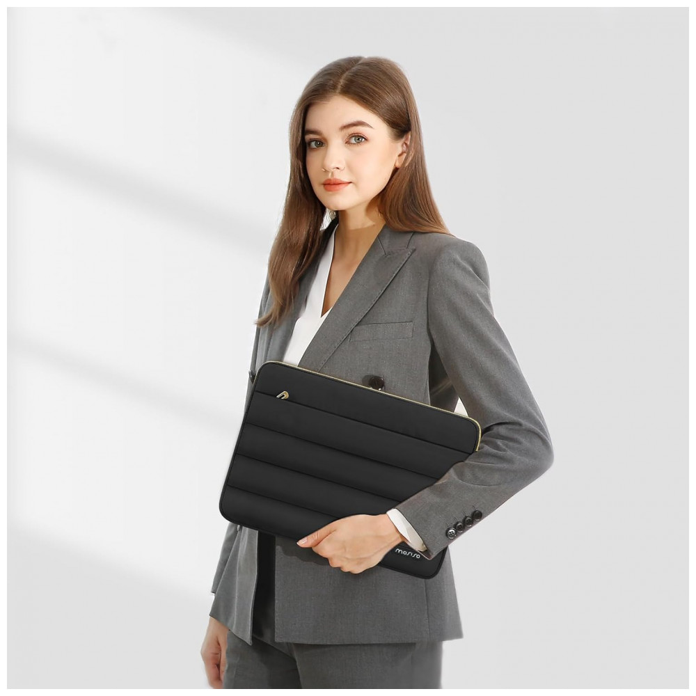 Com acabamento preto discreto e elegante, a sleeve MOSISO combina estilo, funcionalidade e proteção, sendo ideal para uso diário, trabalho, estudos ou viagens, oferecendo segurança para o laptop sem adicionar volume excessivo.