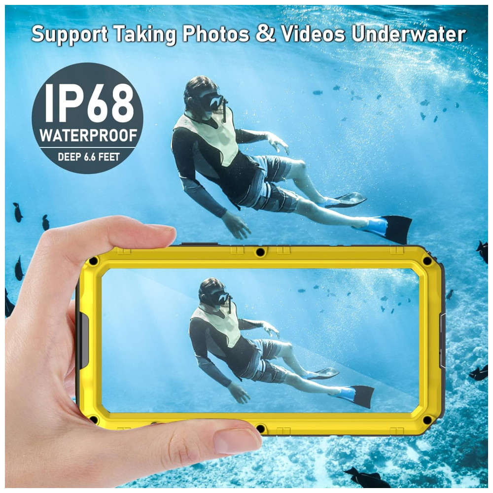 Capa à prova dágua IP68 Caixa de metal resistente com cordão, submersível a mais de 10 pés de profundidade por 2 horas. A tampa totalmente selada é à prova de poeira, areia e neve. Perfeito para uso subaquático, natação ou uso diário.